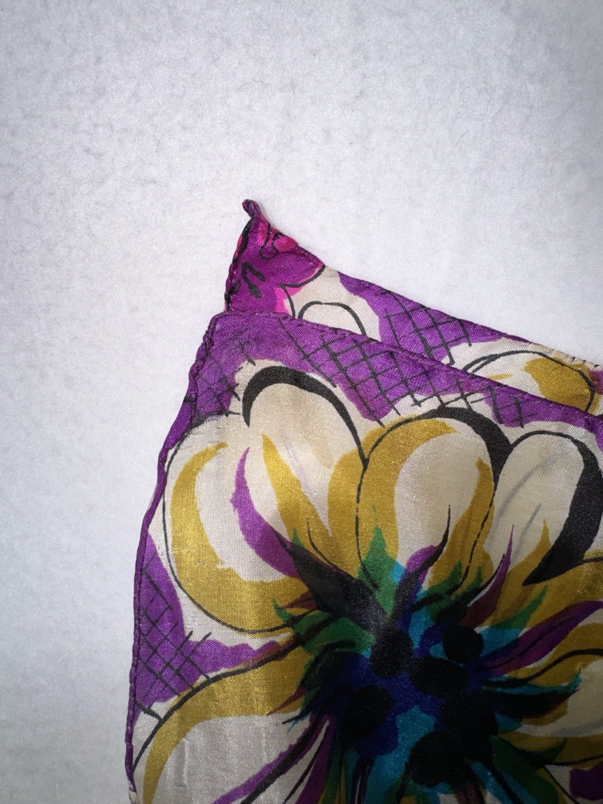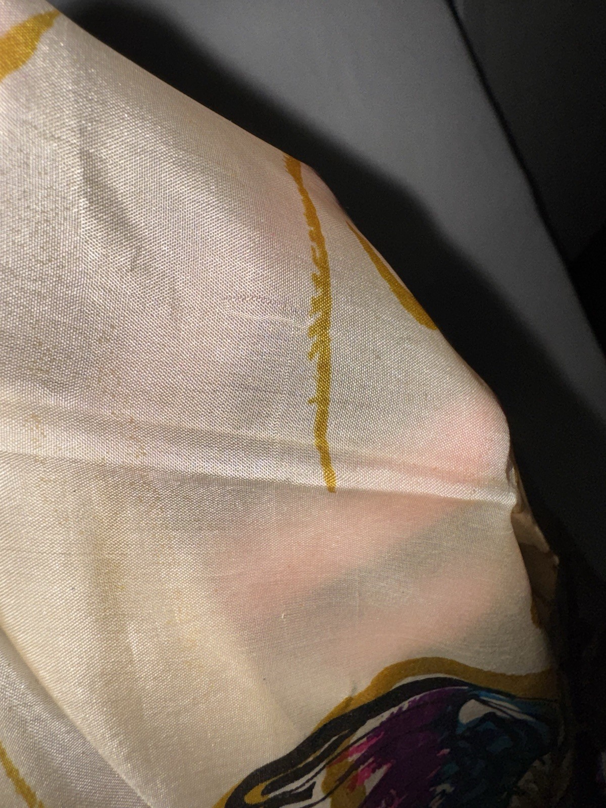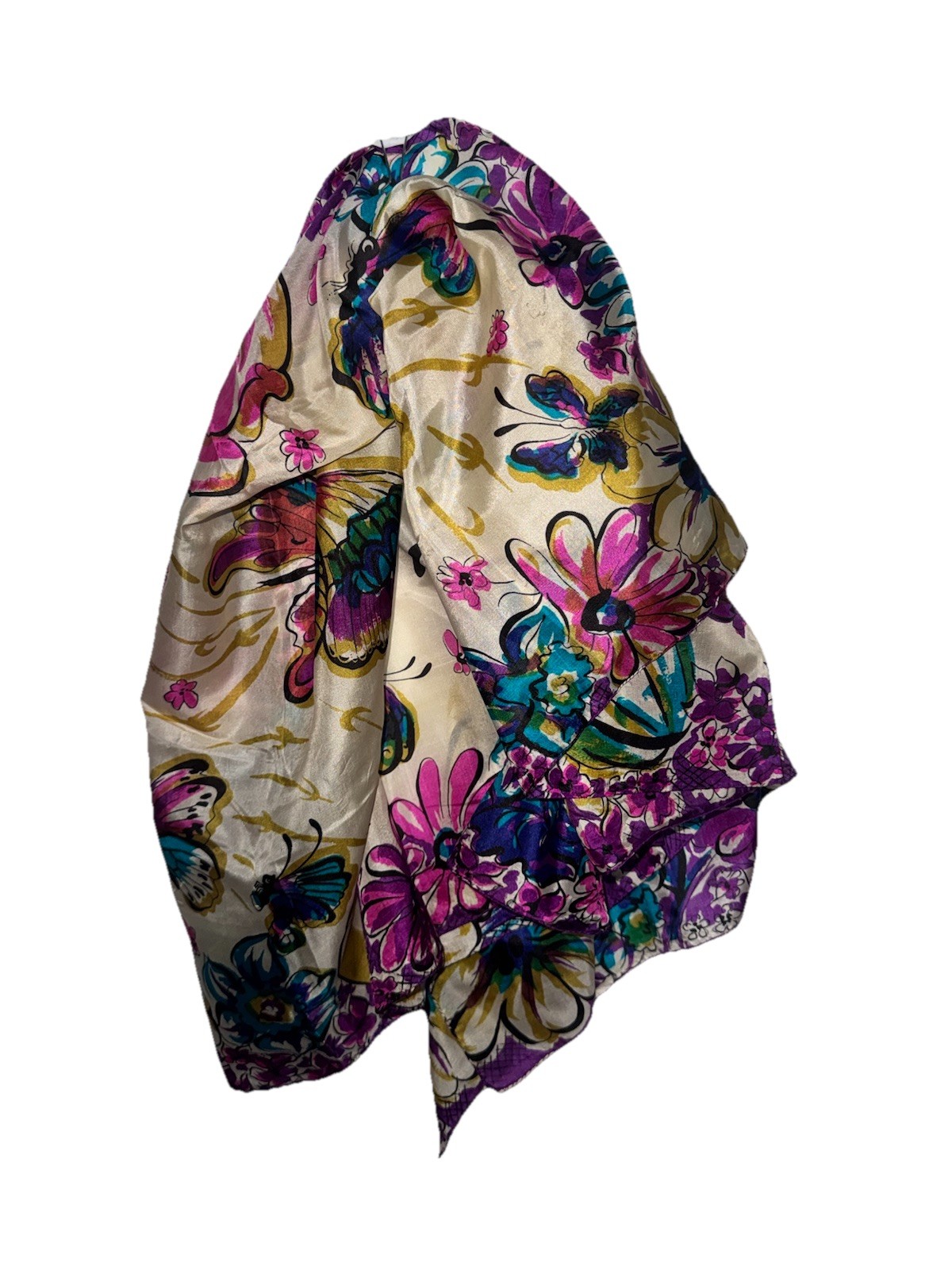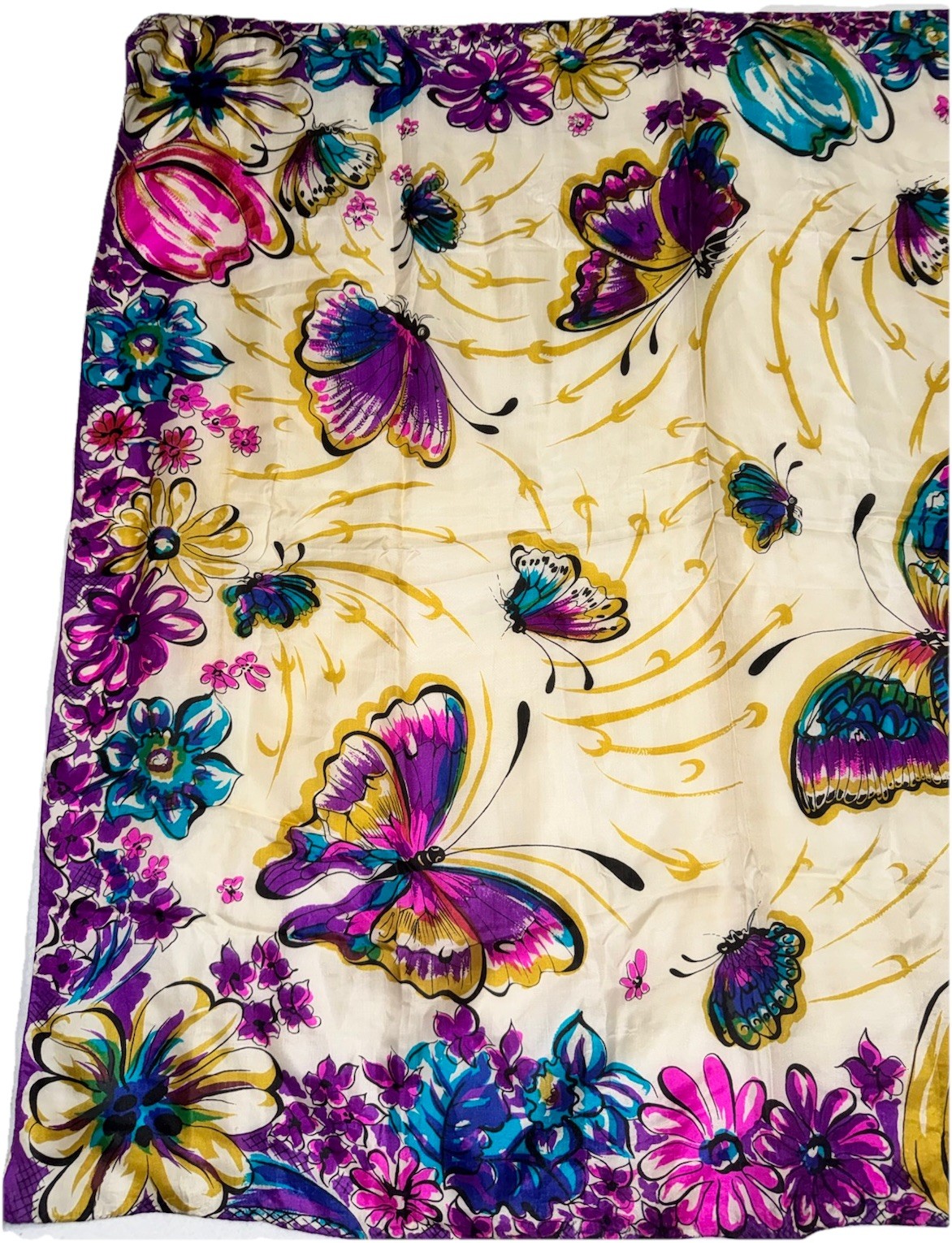 как выглядит Vintage Oversized Square Scarf Butterflies Flowers Floral Cream Shiny Poly Silk фото
