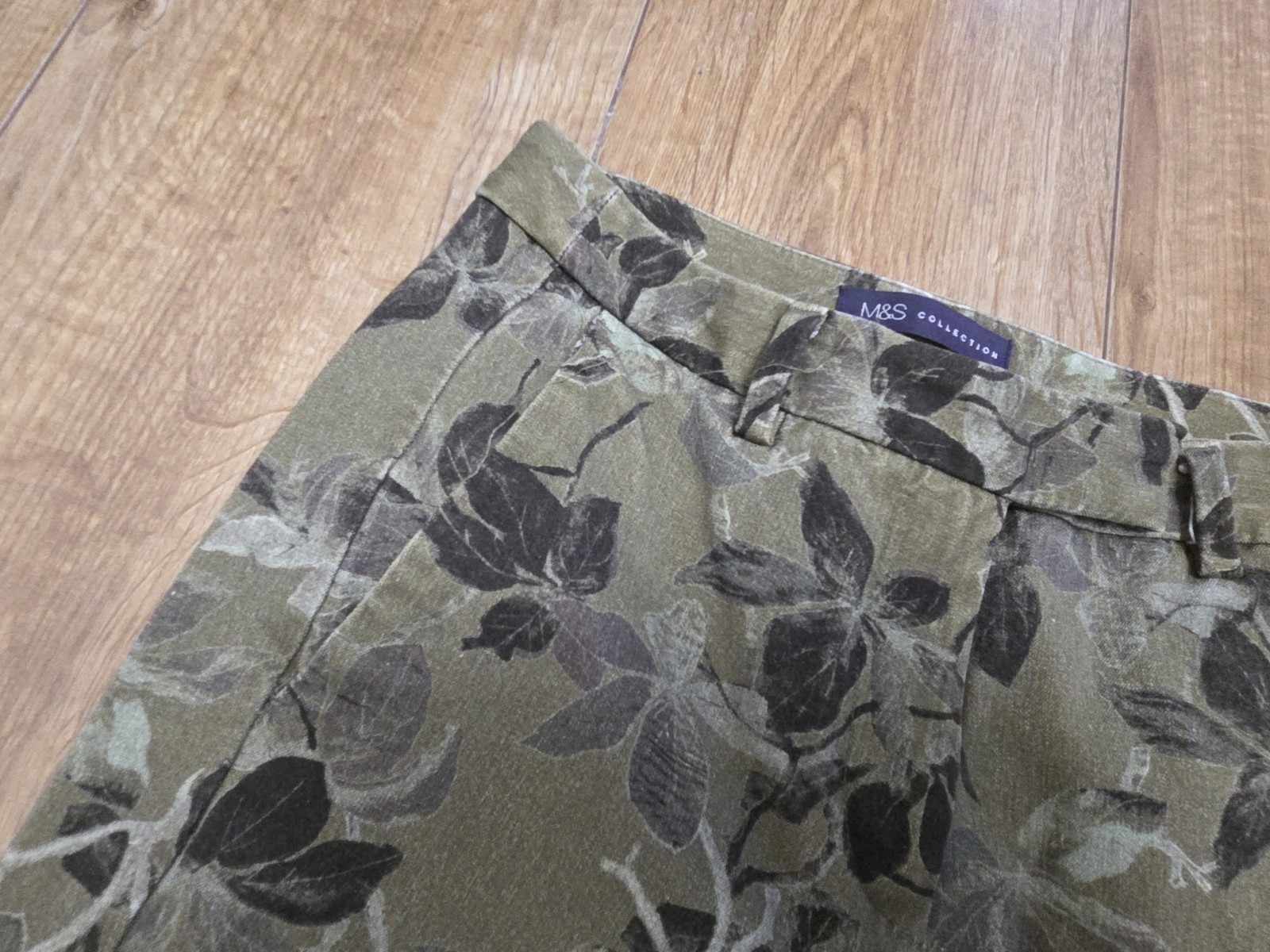 как выглядит Marks And Spencer Womens Leaf Print Pattern Trousers Uk Size 8 Regular Used фото
