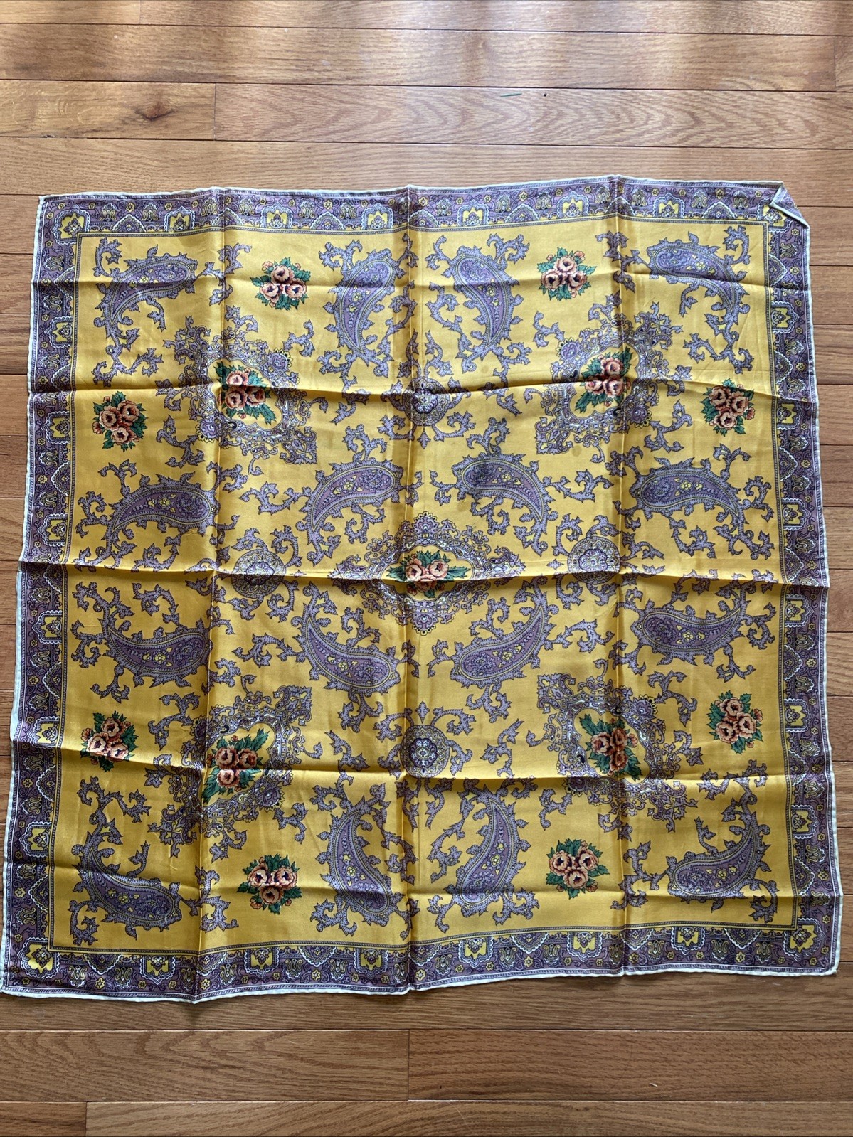как выглядит Vintage Gold Paisley Floral Hand Rolled Scarf, Made In Japan, 29" фото