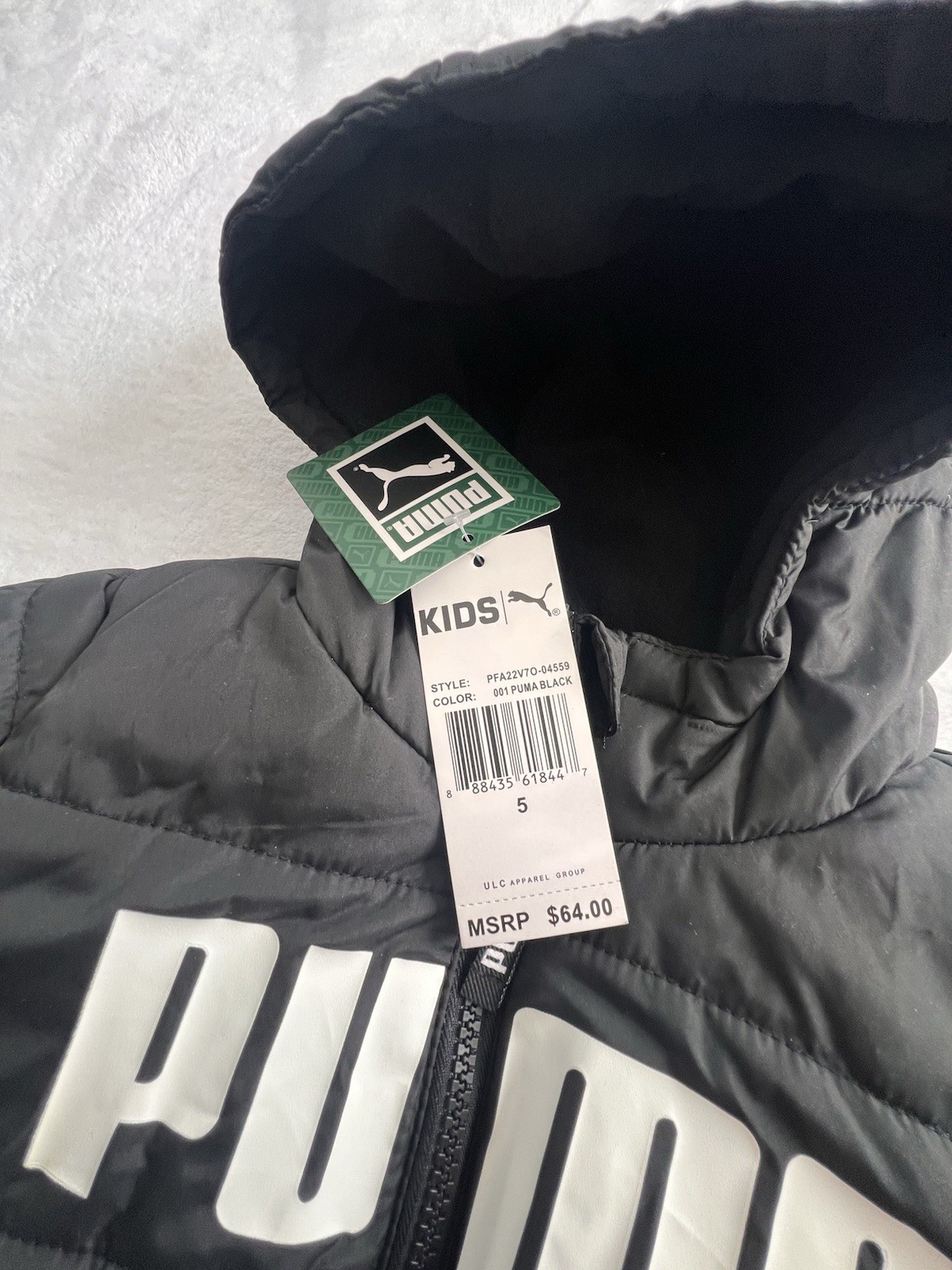 как выглядит PUMA Boys Hooded Padded Jacket Size 5 Years Black Polyester Fleece Lined Puffer фото