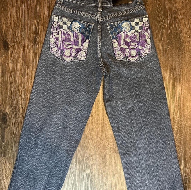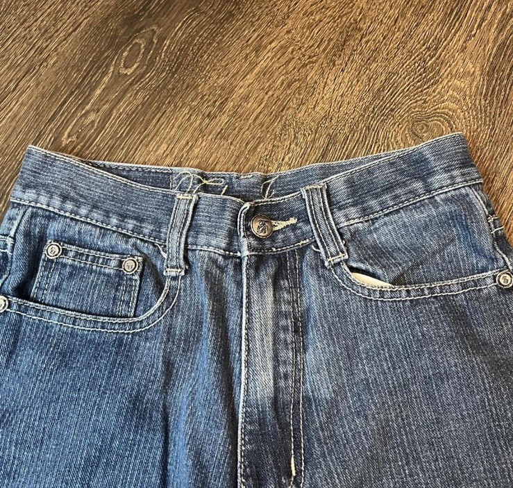 как выглядит FUBU Embroidery Jeans Boys Size 12 Y2K Blue Denim фото