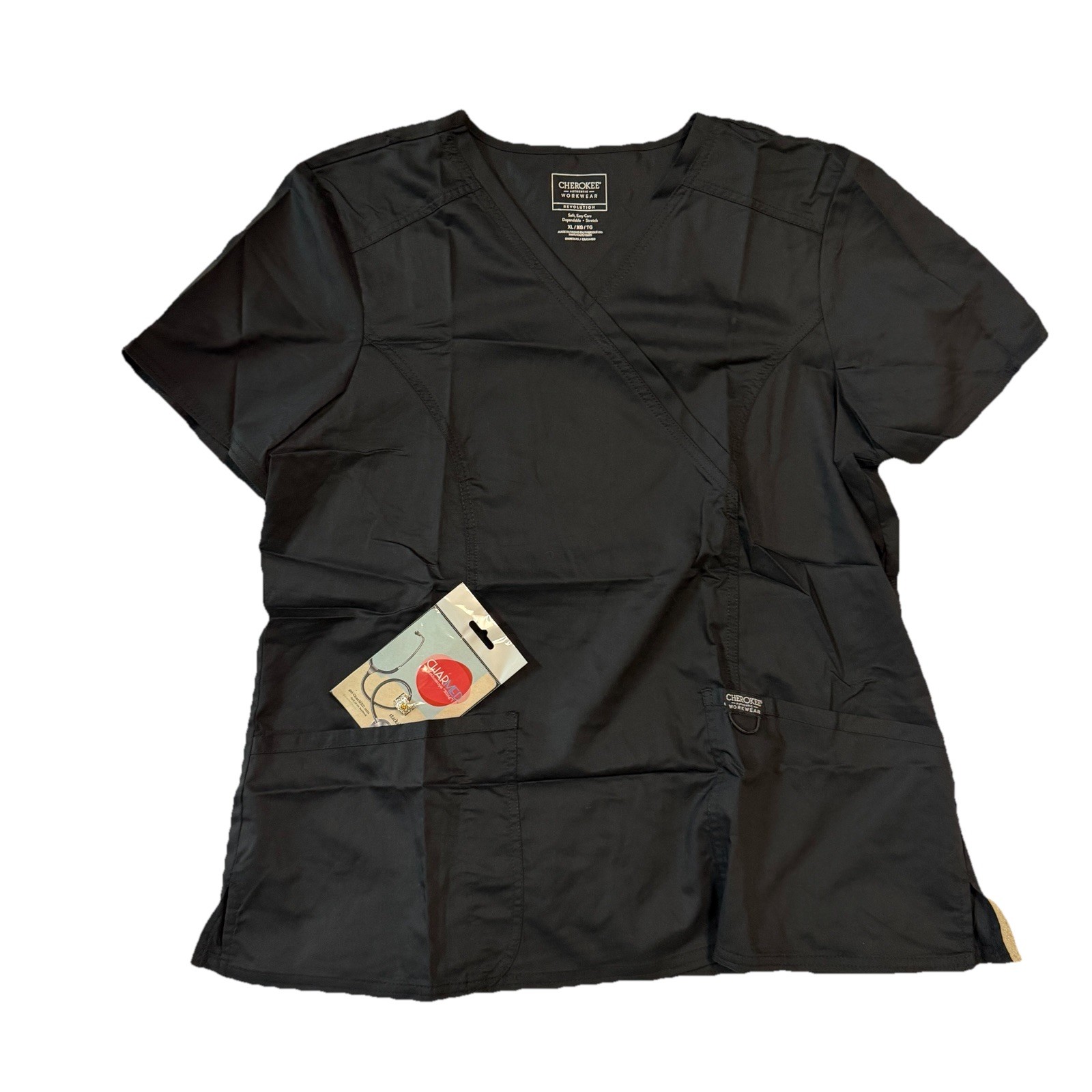 как выглядит Cherokee Stretch Womens Short Sleeve Scrub Top With Pockets - Medium- Black фото