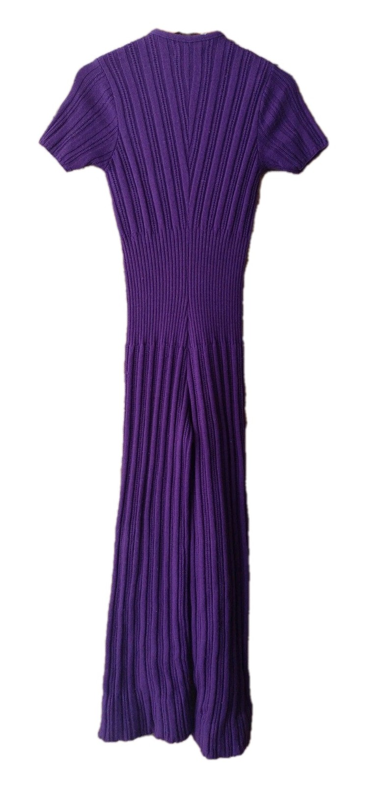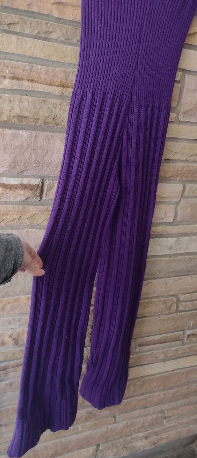 как выглядит Rare Vintage 70s Jane Irwill Knit Jumpsuit Purple Ribbed Stretch Gold Button M фото