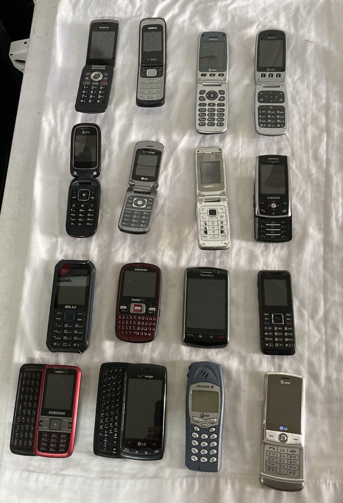 Huge Lot Vintage Cell Phones Flip Phones BlackBerry Nokia LG Samsung Lot E 16pcs
