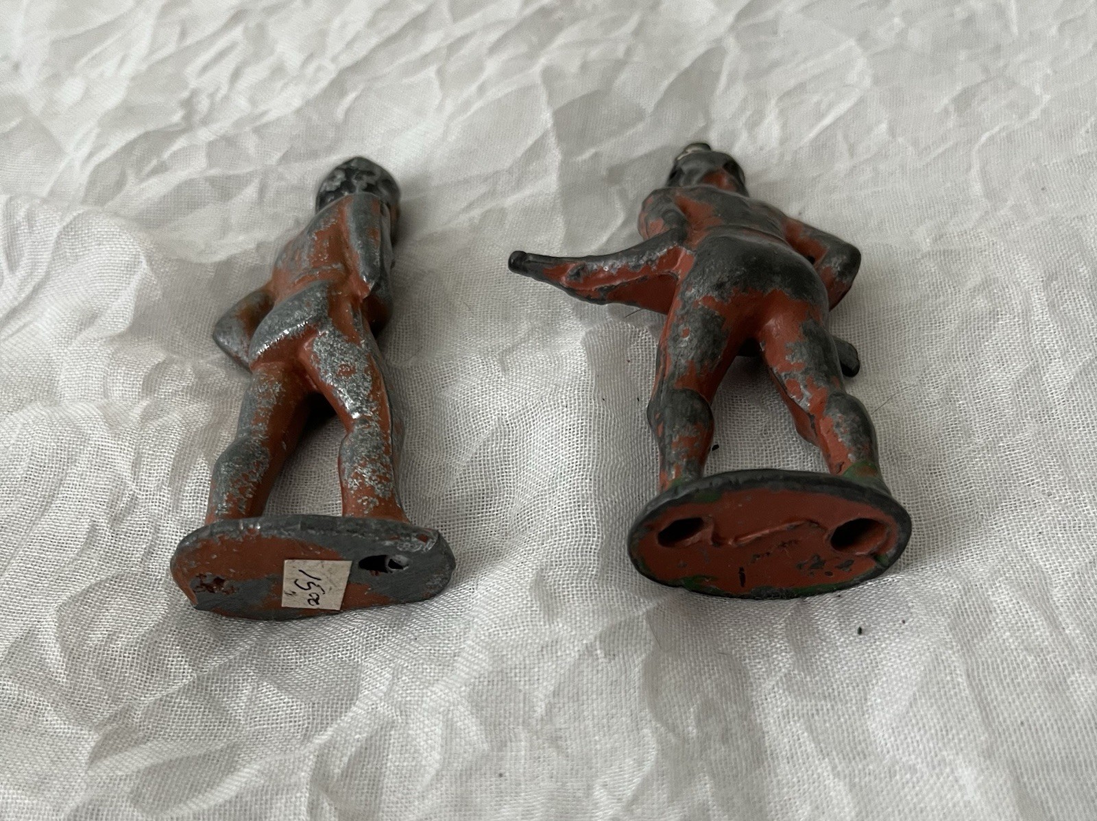 Lot of 2 Vintage Lead Toy Figures Indian w Knife and w Rifle Hollow Cast Metal