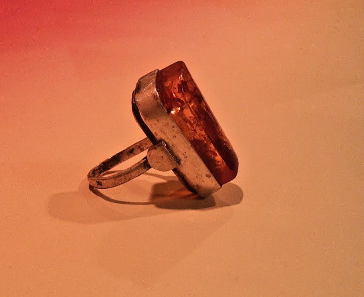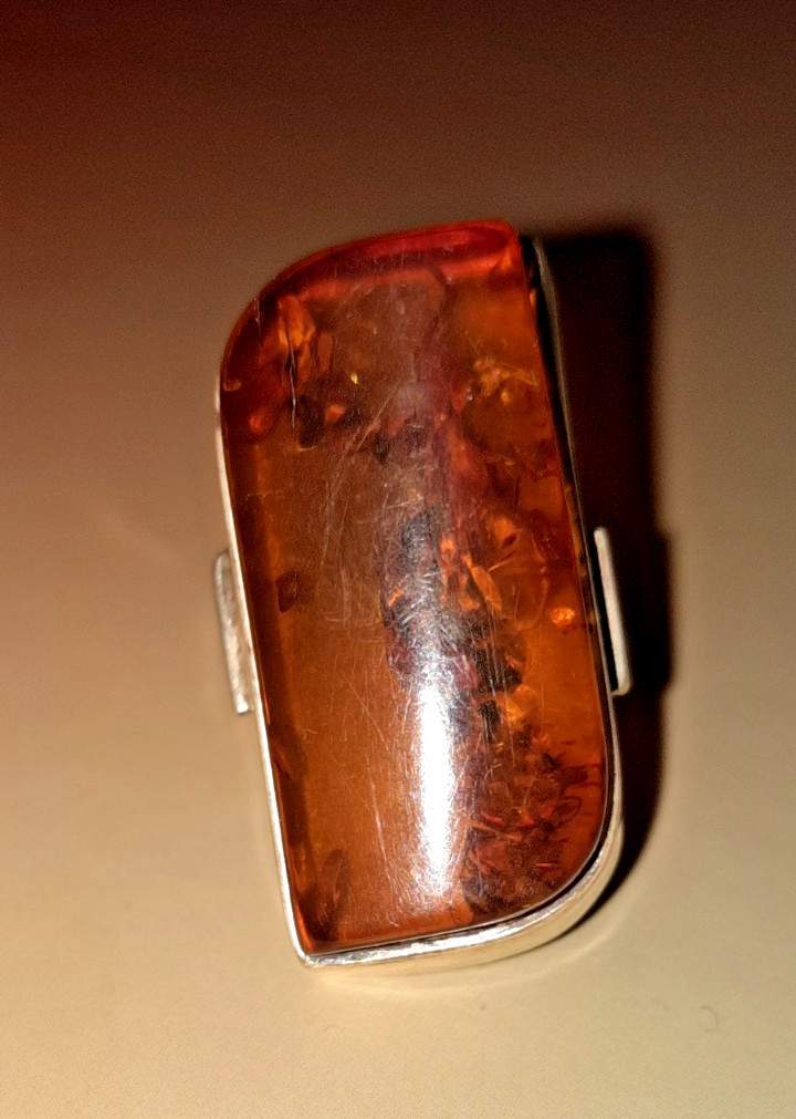 как выглядит Silver Geometric Amber Modernist Ring Size 7 Artisan Made EUC фото