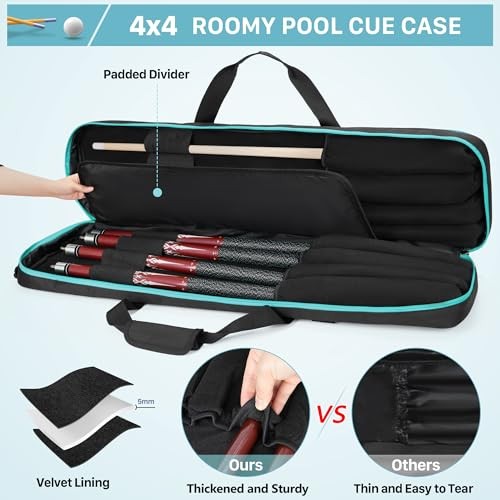 4x4 Pool Cue Case Hold Up to 4 Butts and 4 Shafts, Pool Stick Black and Green