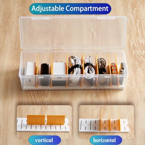 Cable Organizer Storage Box with 8 Cable Ties,Charger Cable Cord clear-1 pack
