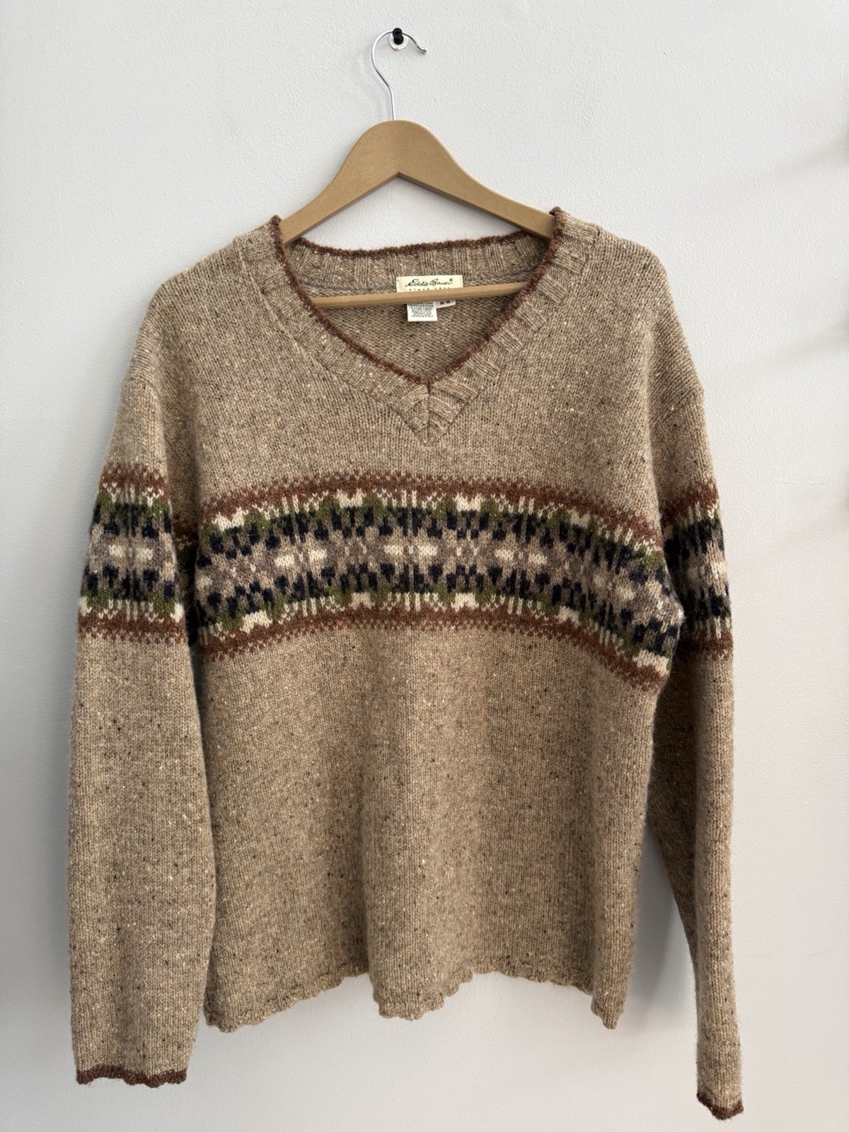 Vintage Eddie Bauer Wool Blend Fair Isle Knit Pullover Sweater Sz M USA Made
