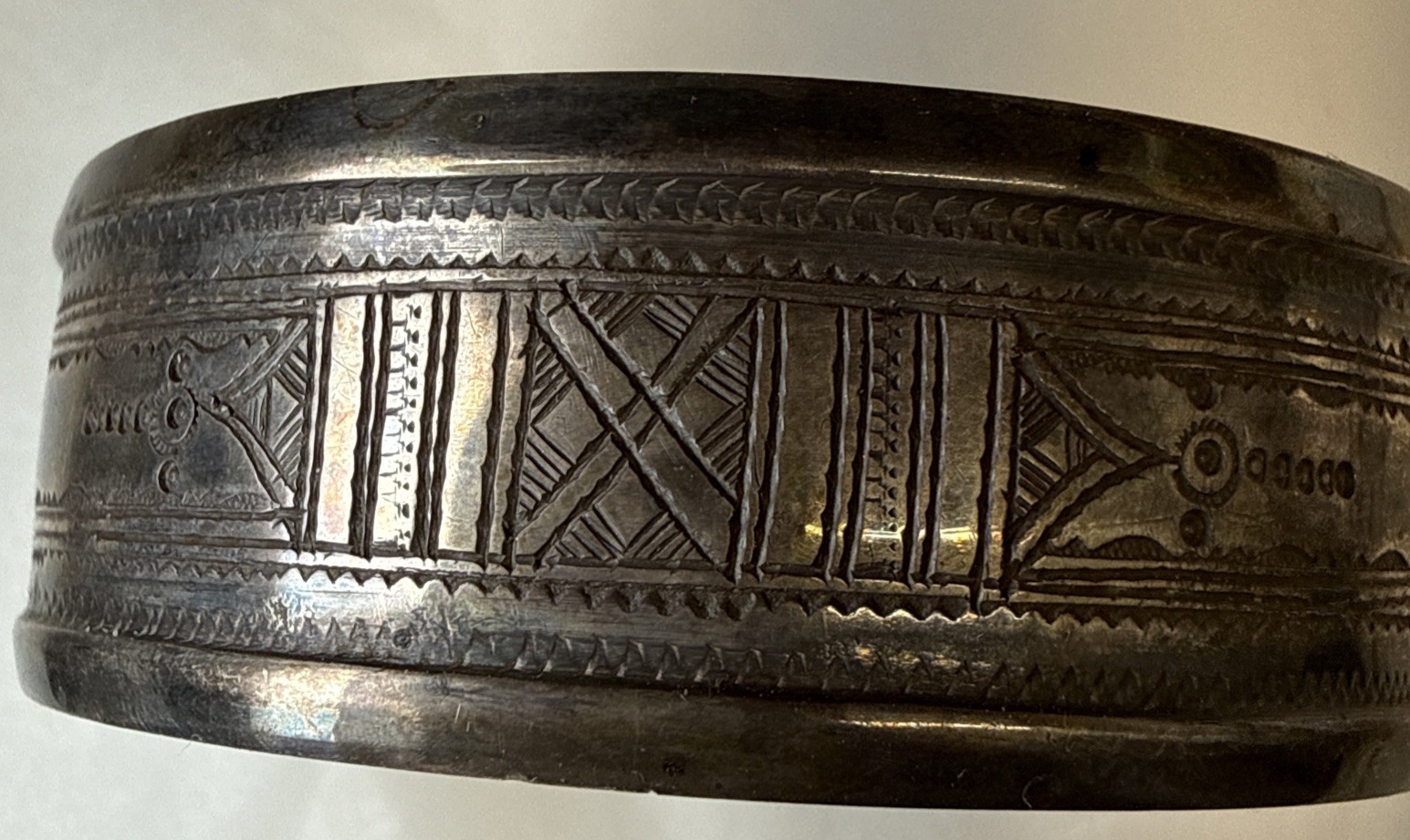 как выглядит Vintage African Handmade Tribal Etched Sterling Silver Cuff Bracelet фото