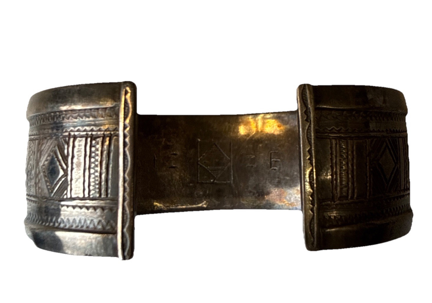 Vintage African Handmade Tribal Etched Sterling Silver Cuff Bracelet