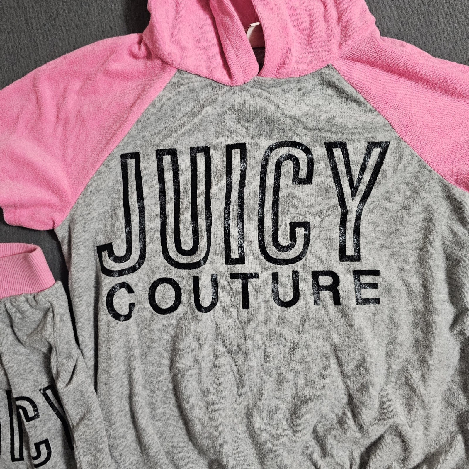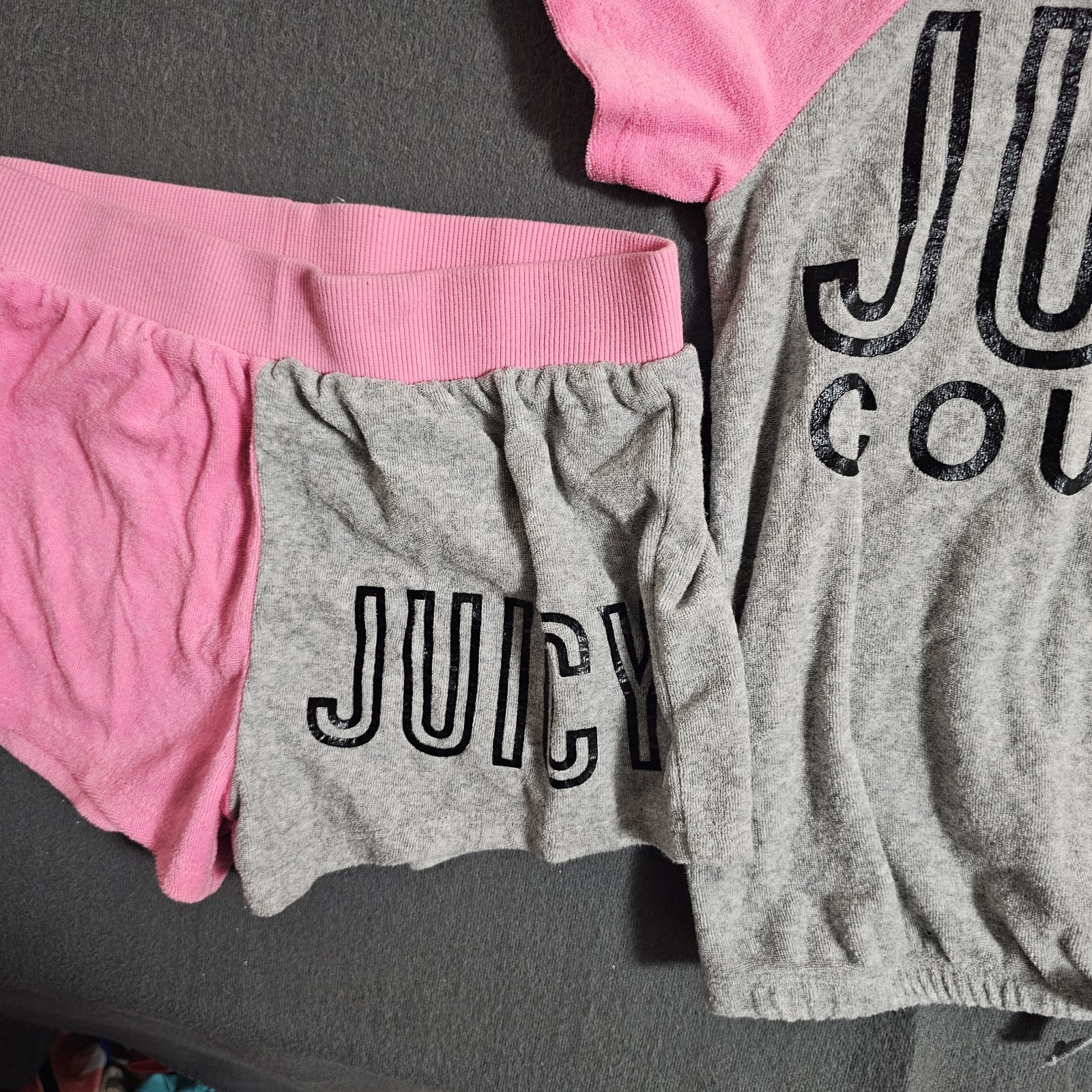 Juicy Couture 8/10 Hooded Short Sleeve With Matching Shorts Gray Pink
