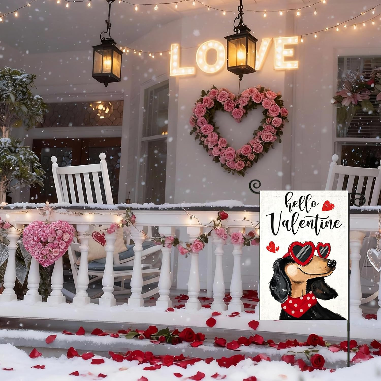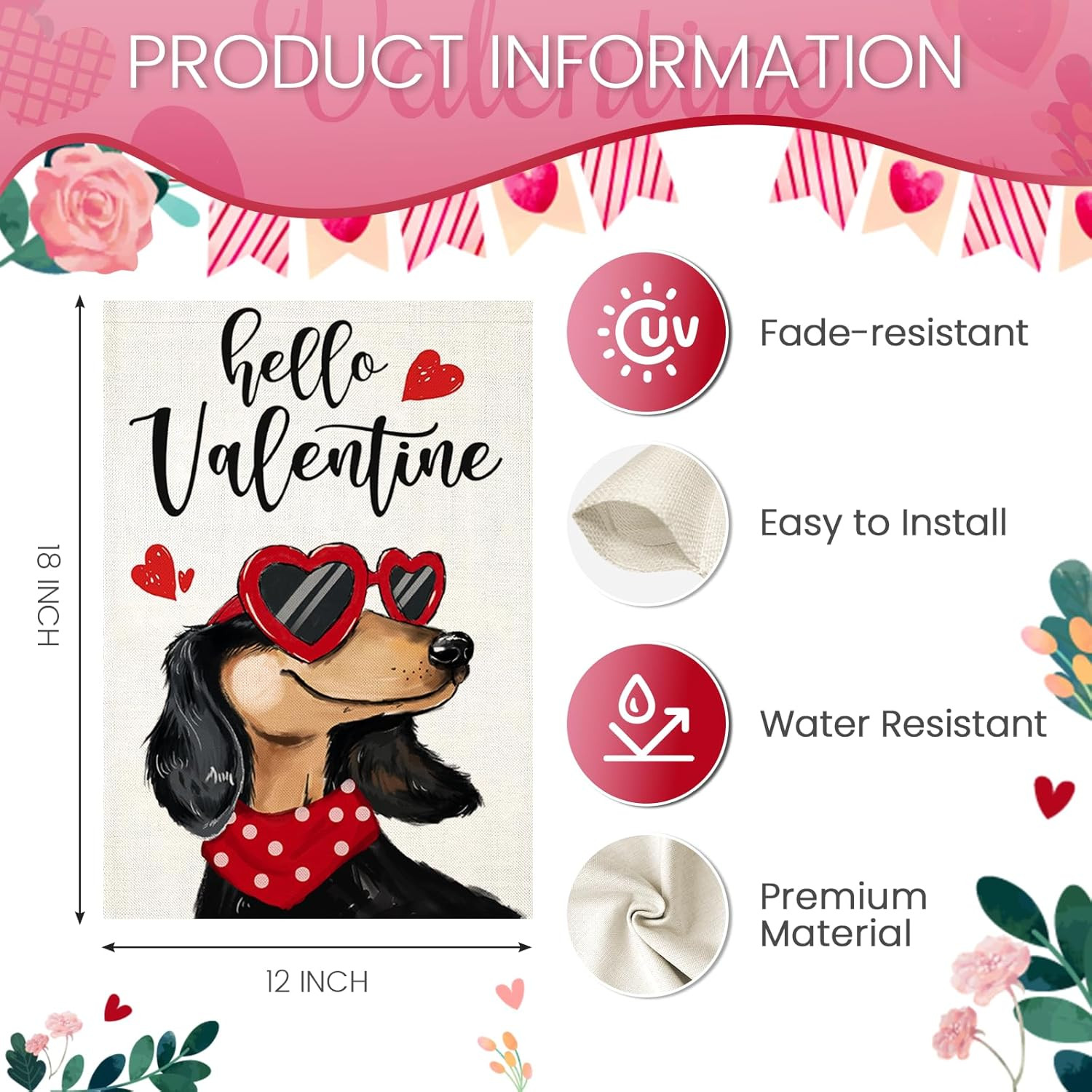 как выглядит Hello Valentines Garden Flags 12X18 Inch Double Sided, Dachshund Dog with Love S фото
