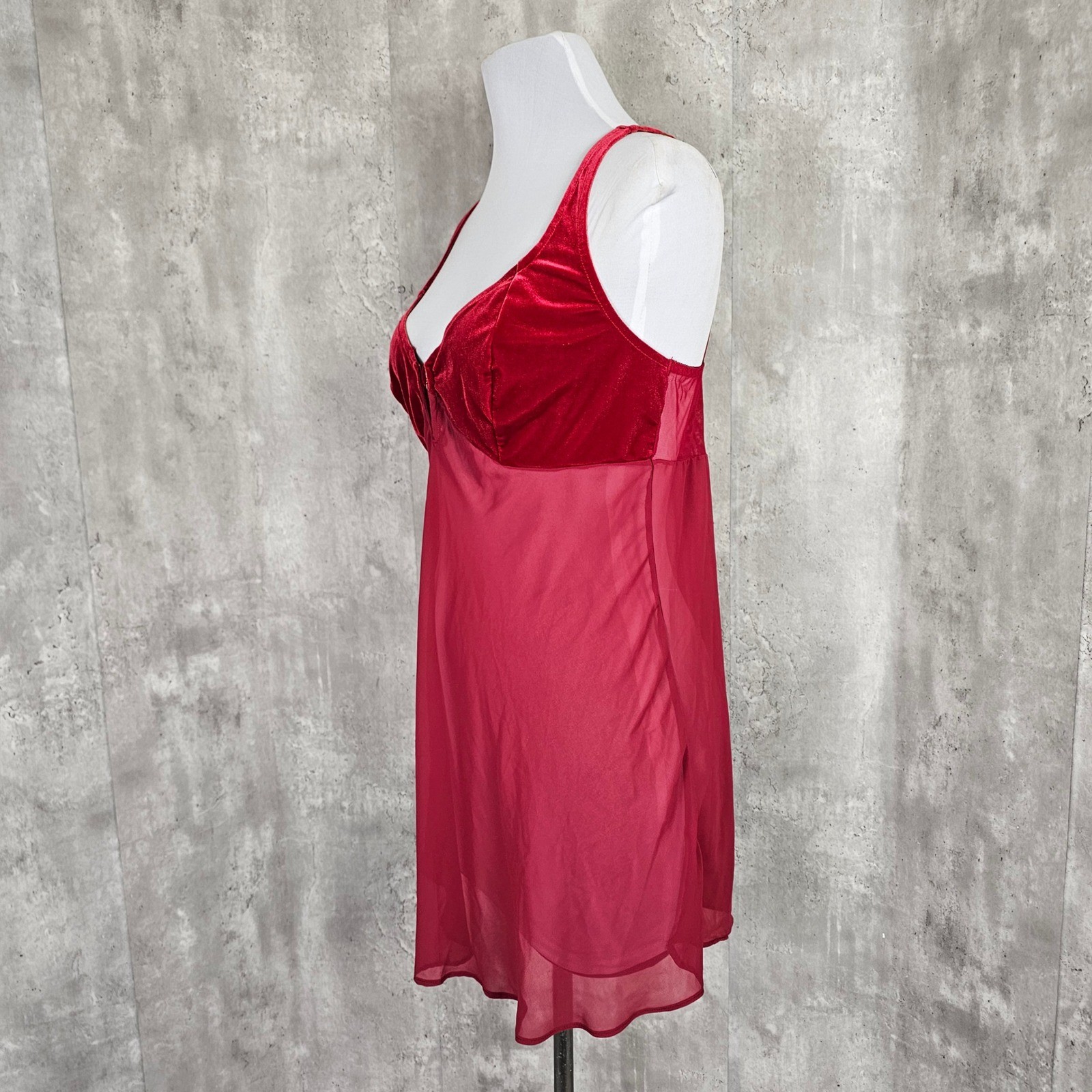 Cacique Lane Bryant Red Velvet Sheer Babydoll Nightie Lingerie Plus Size 14/16