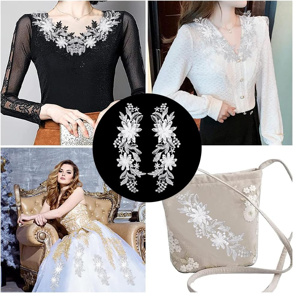 4Pcs Embroidery Lace Patches White 3D Flowers Lace Neckline Applique Sew on Coll