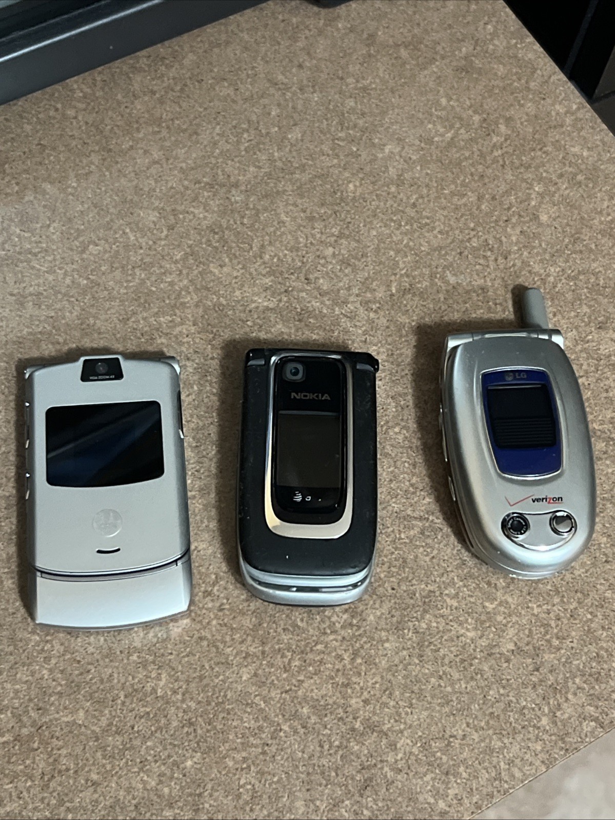 Lot Of 3 Vintage Cell Cellular Telephones Phones - Motorola Razr, Nokia, LG