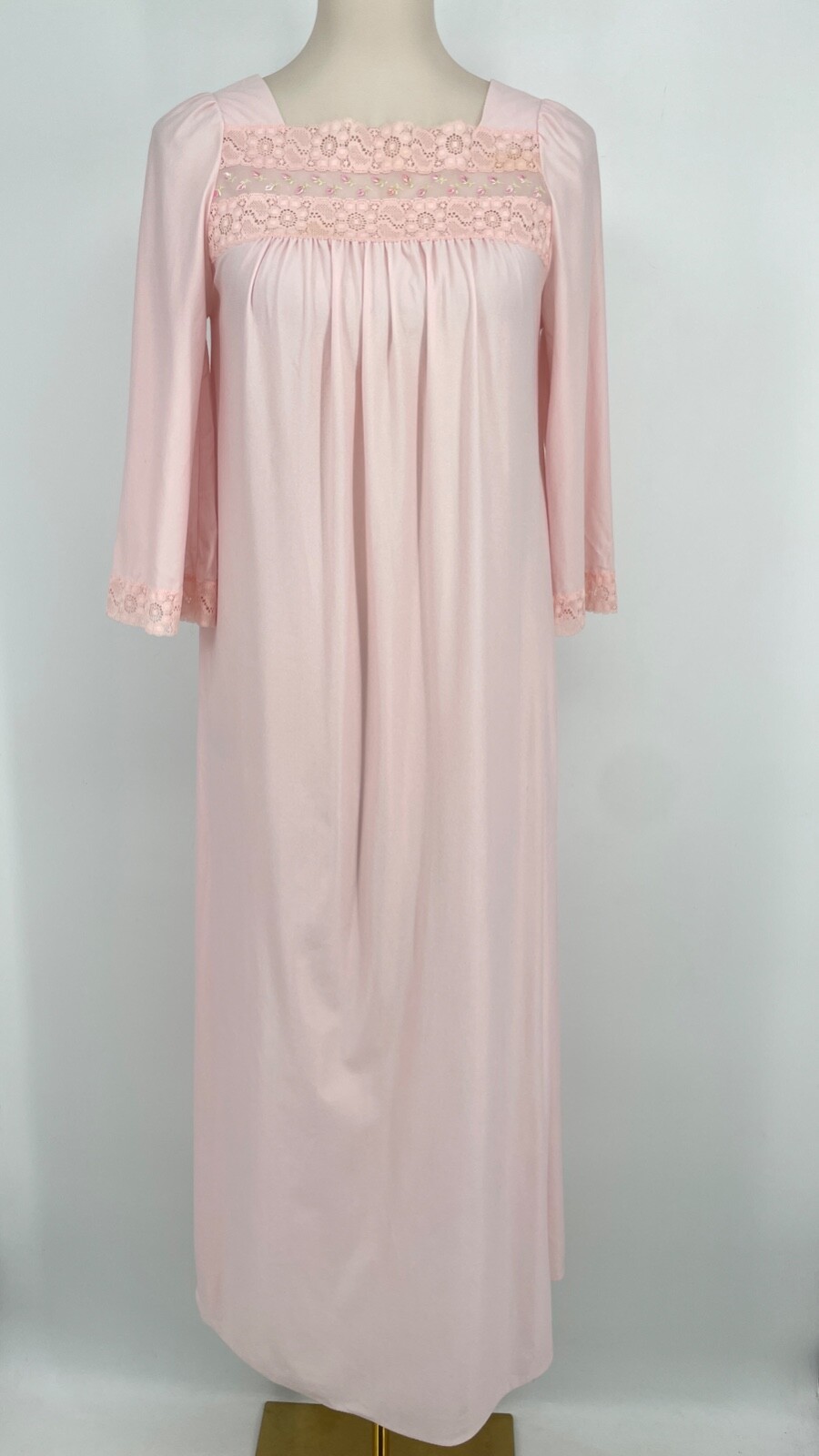 VYG Vanity Fair women's XS/S long Nightgown Lace trim Pink dress 100 nylon maxi