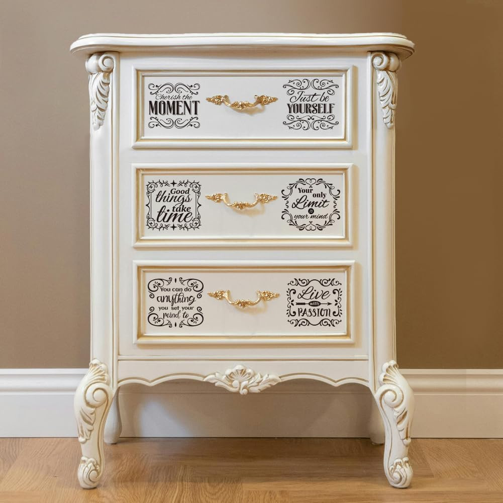 18 Sheets Rub on Transfers for Crafts, Retro and Inspirational Quotes 3.6X3.9