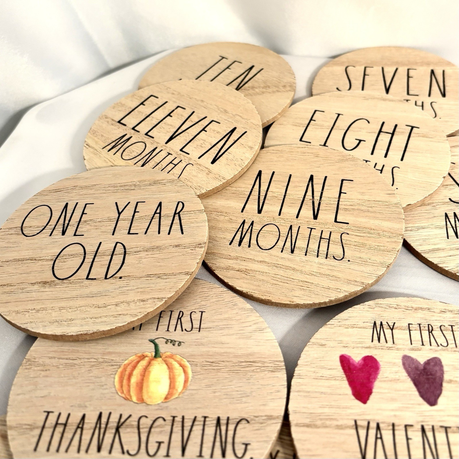 Rae Dunn Baby Photo Circles Discs Set Of 22 Milestones Months First Year Picture