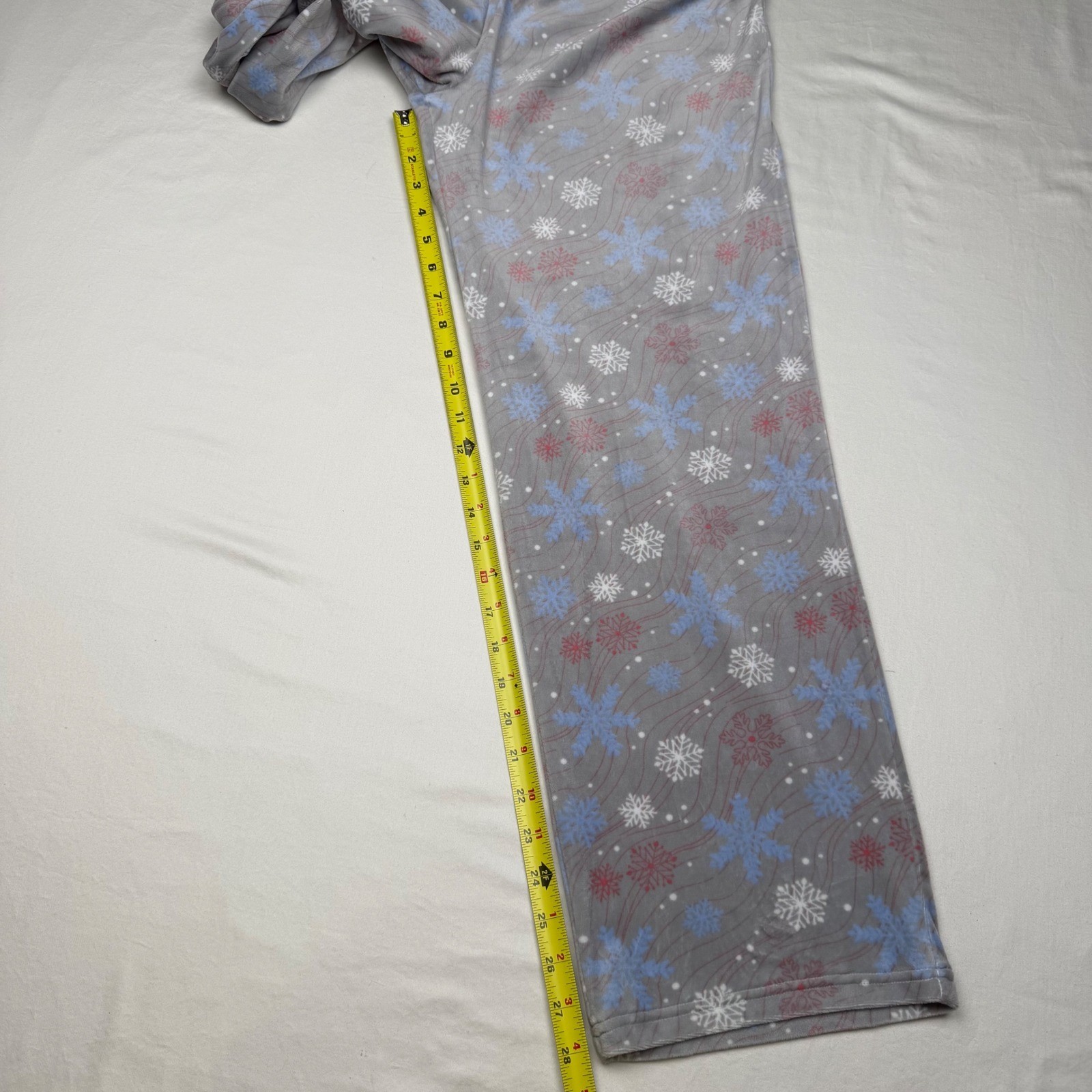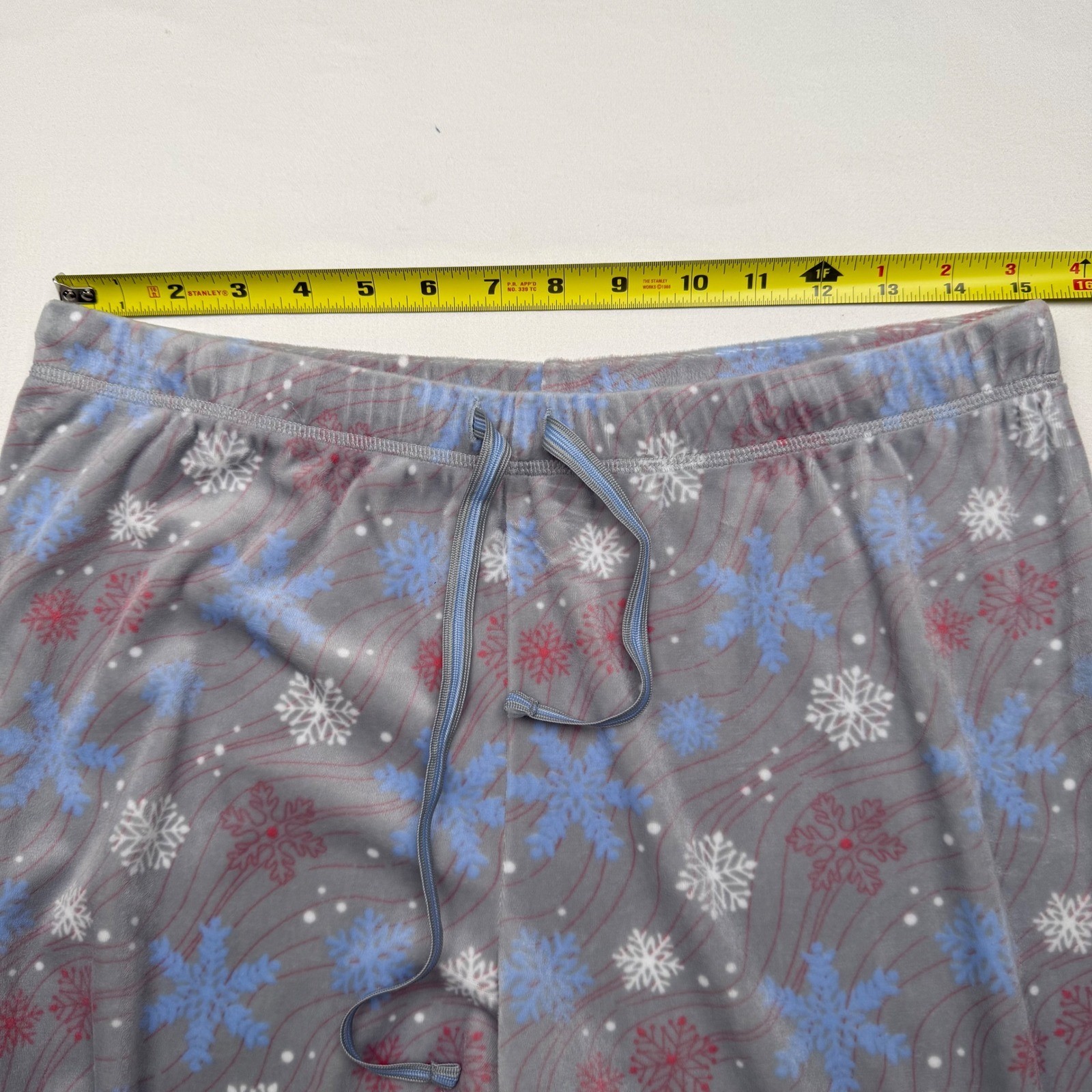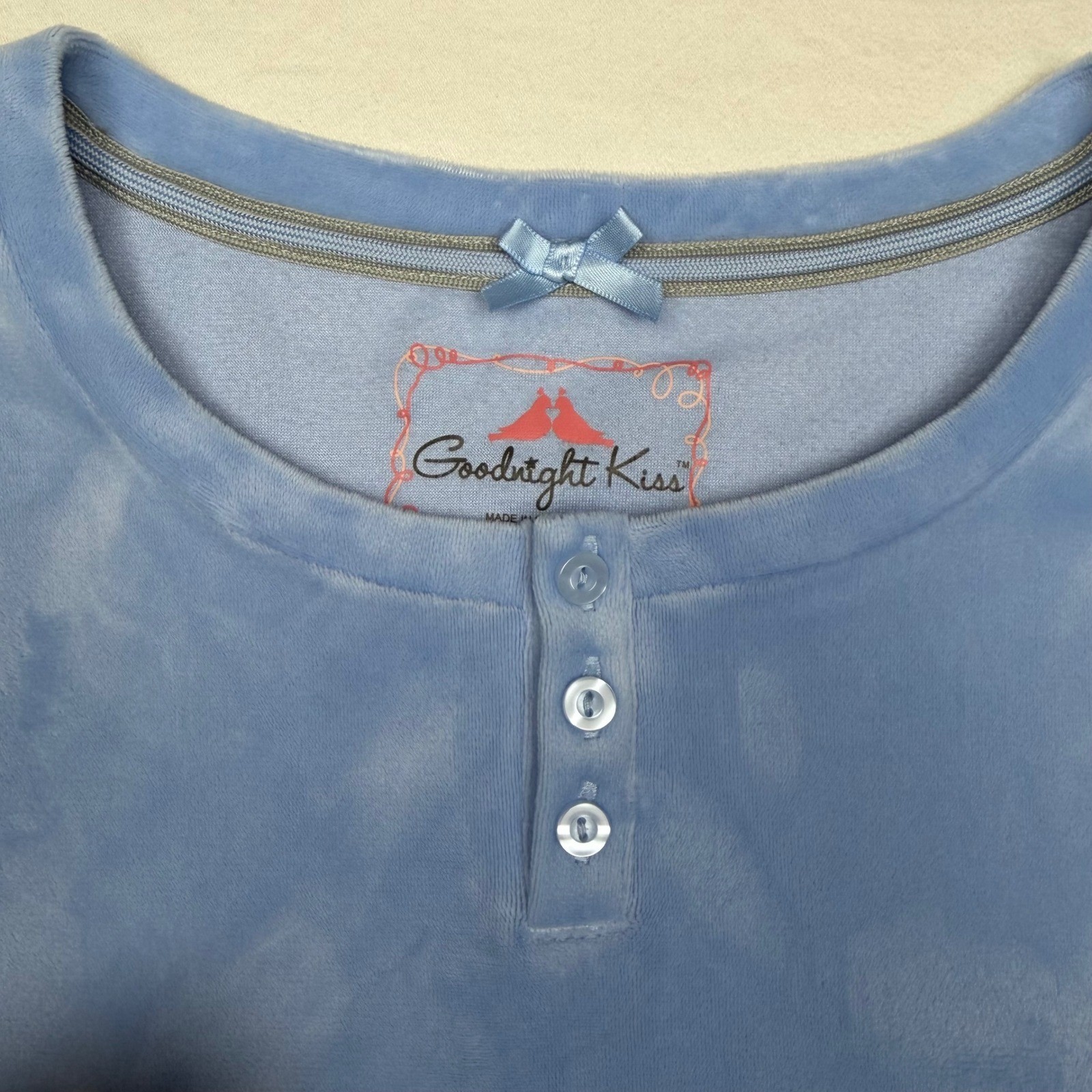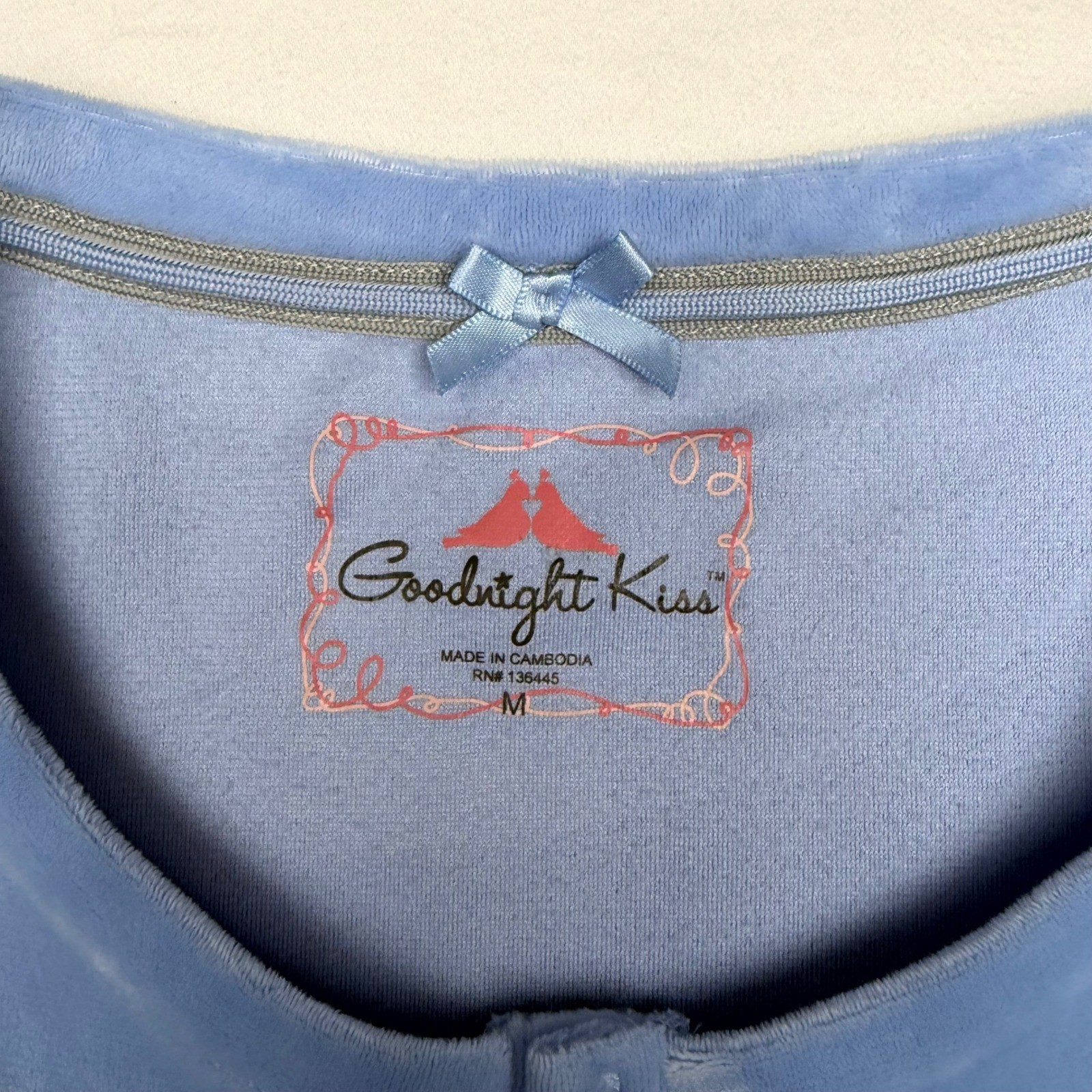 Goodnight Kiss Womens Blue Velour Pajama Set Gray Snowflake Pants Size M
