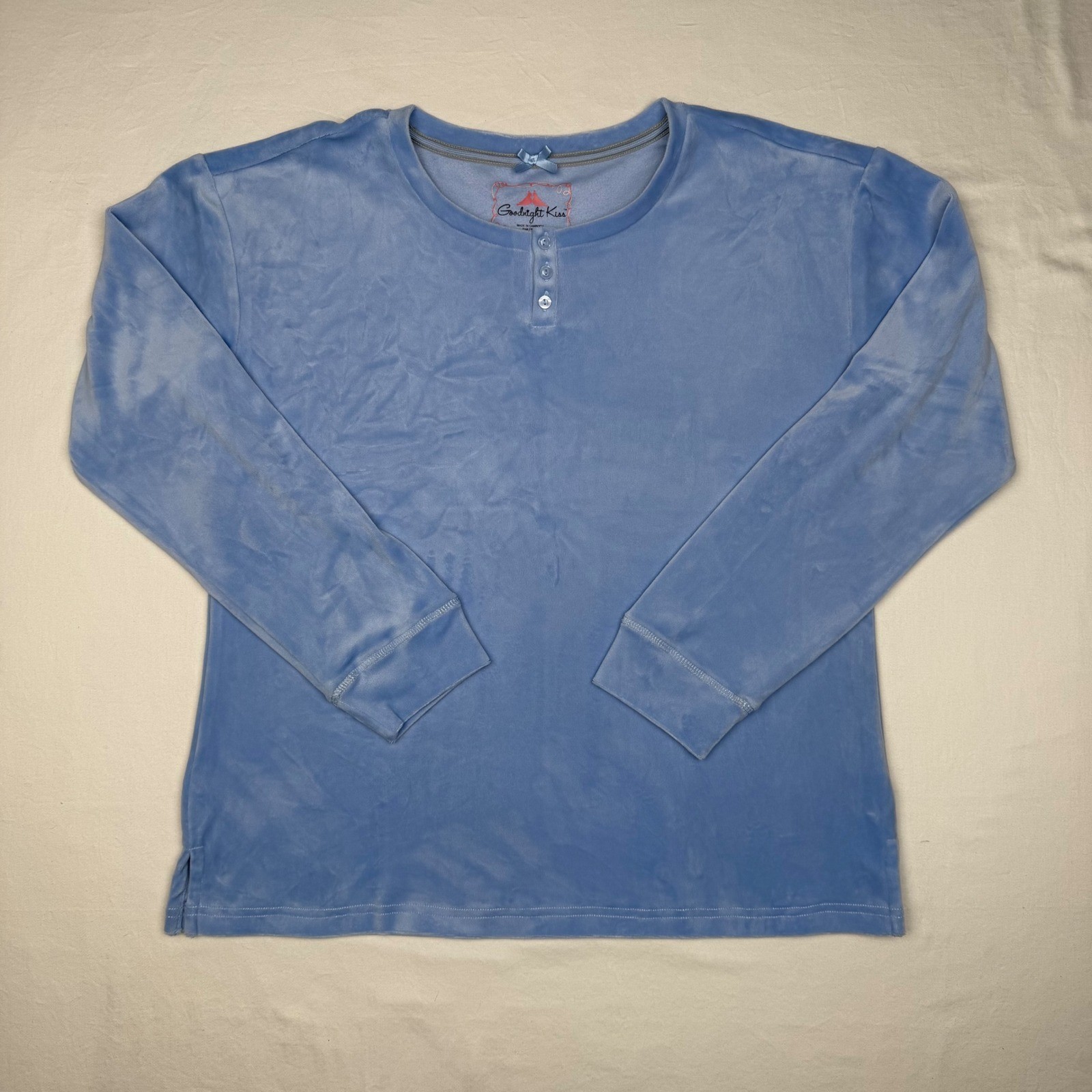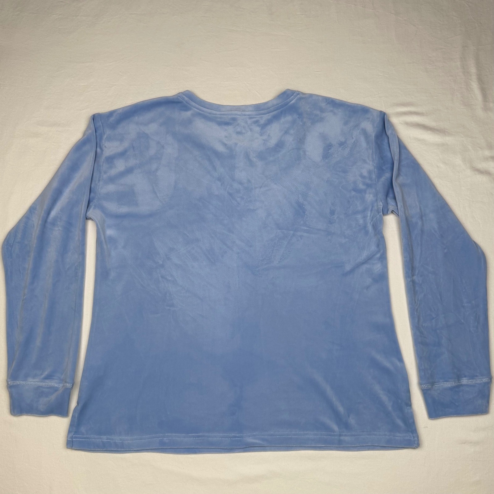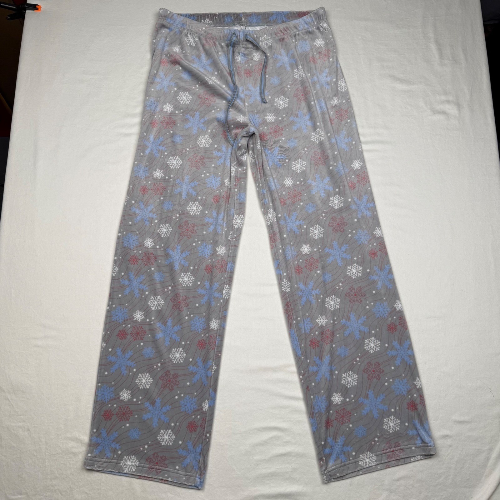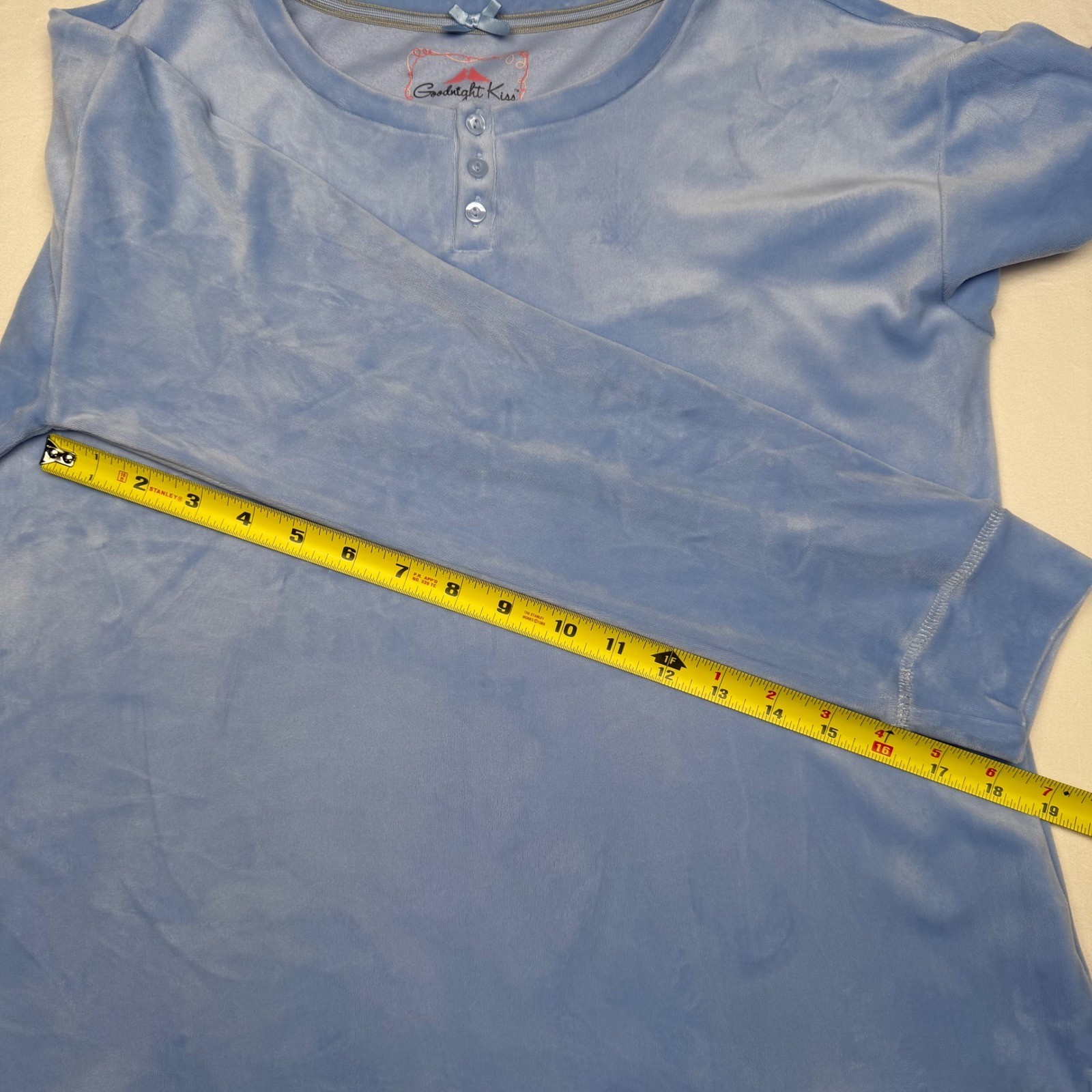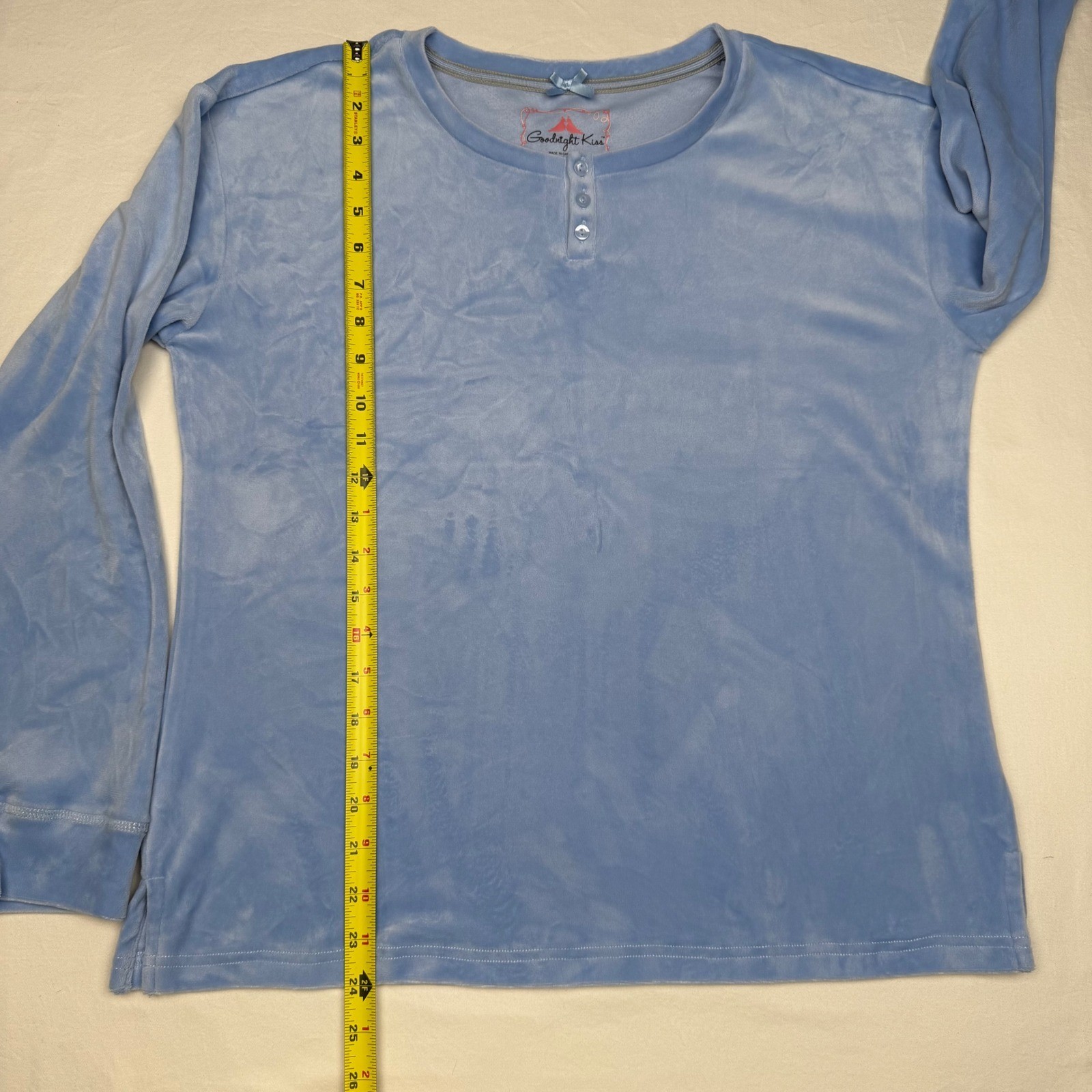 Goodnight Kiss Womens Blue Velour Pajama Set Gray Snowflake Pants Size M