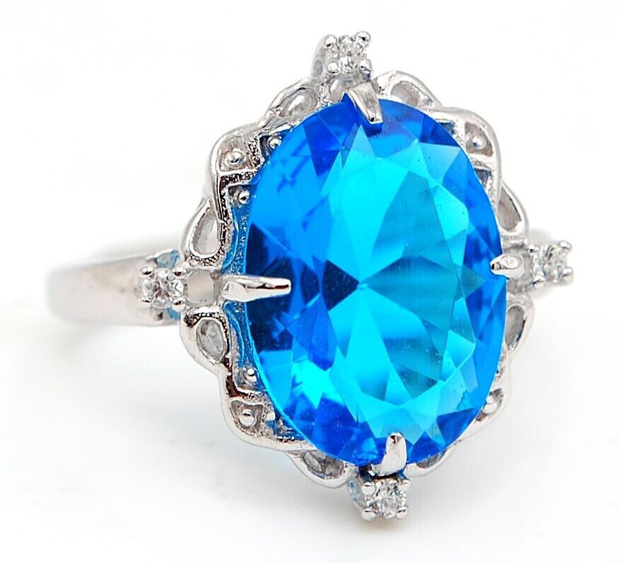 как выглядит 5CT Blue Topaz White Topaz 925 Solid Sterling Silver Ring Sz 9 IB2-6 фото
