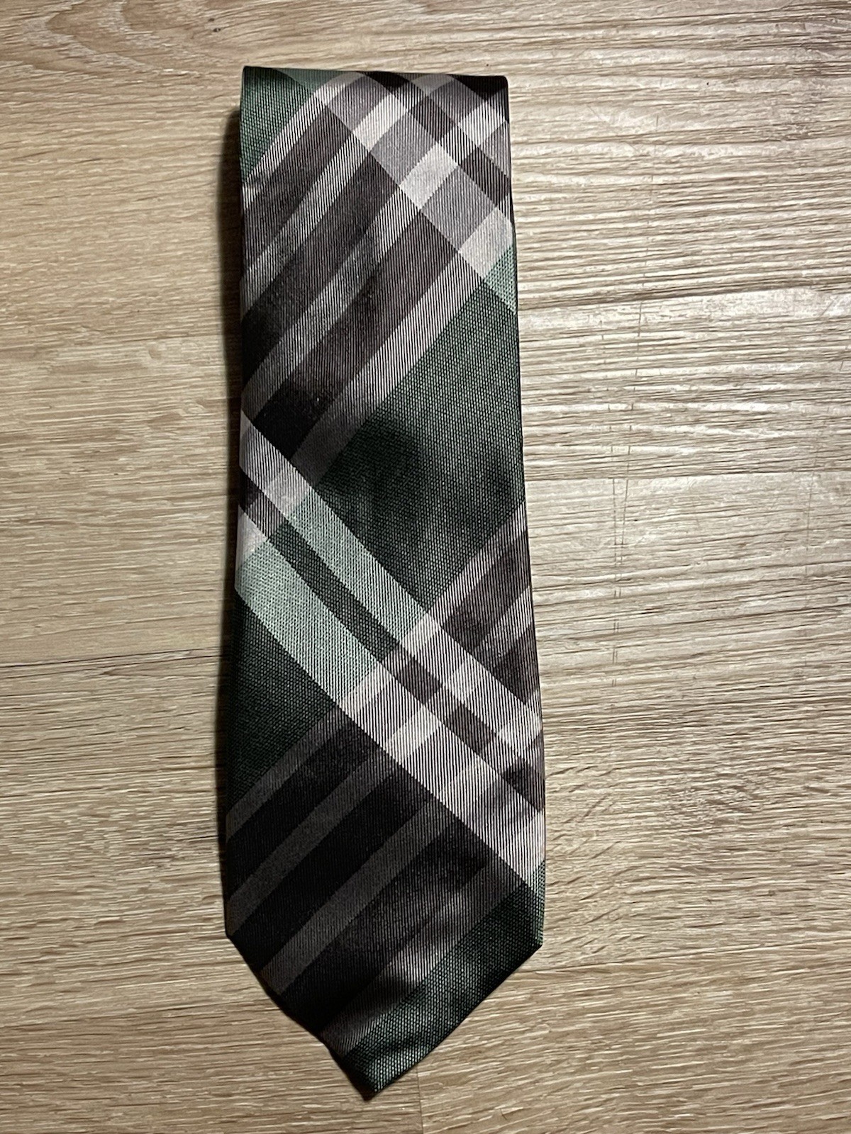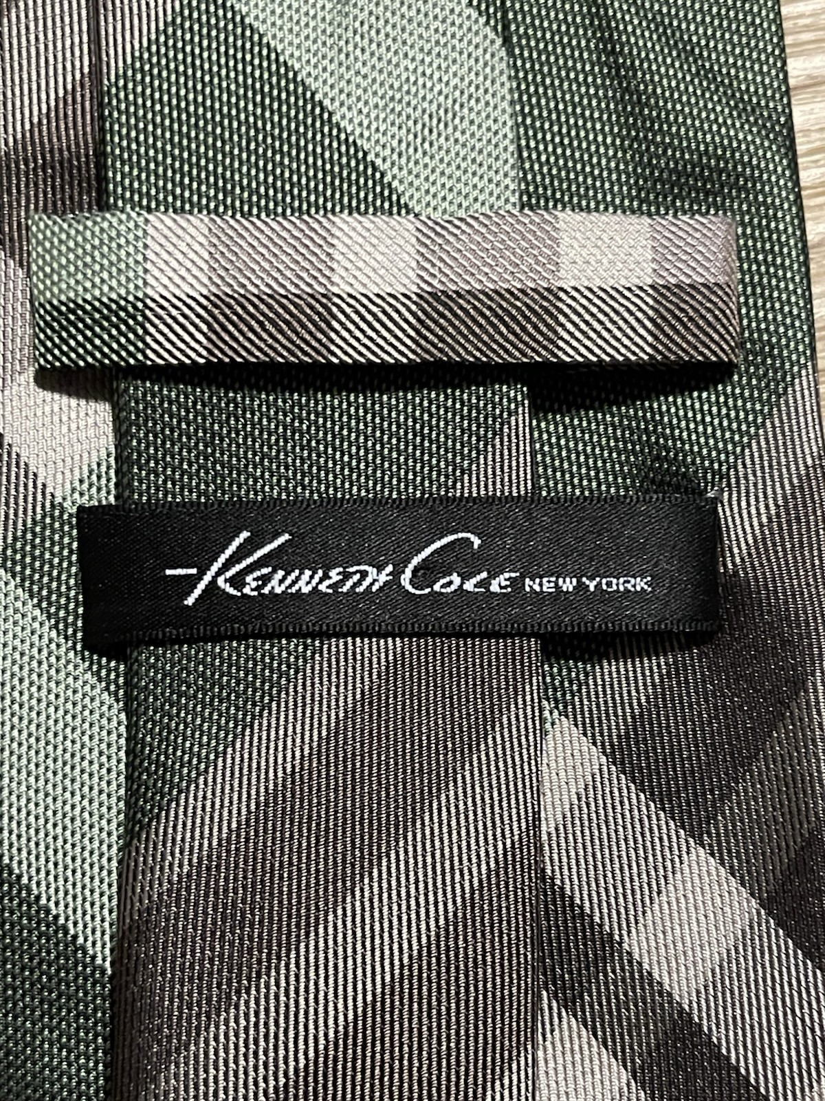 как выглядит Kenneth Cole 100 silk tie in green, black, and grey фото