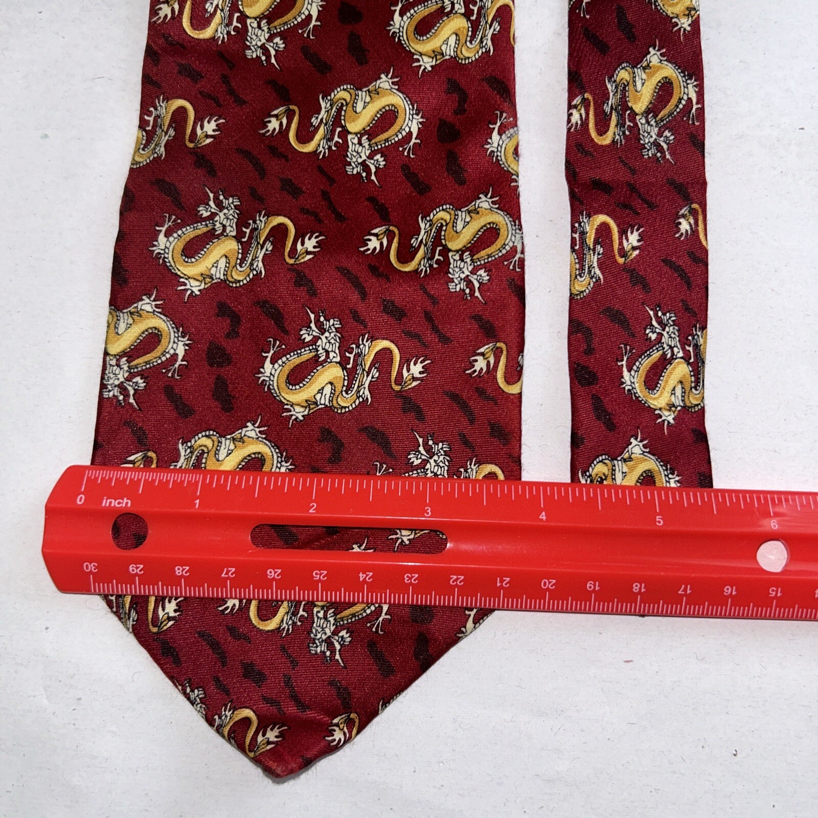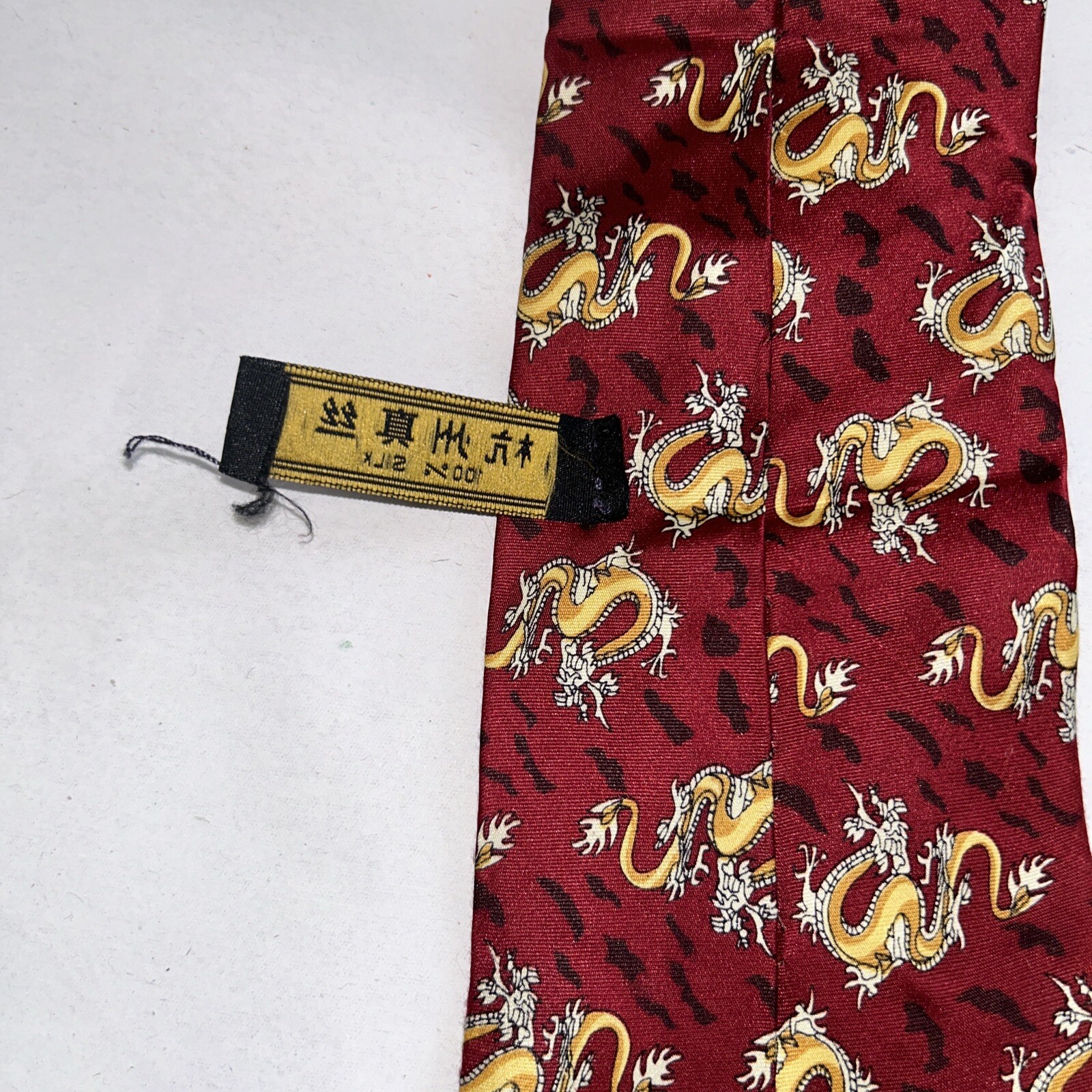 как выглядит Silk Dragon Tie Red Tie With Yellow Gold Dragons фото
