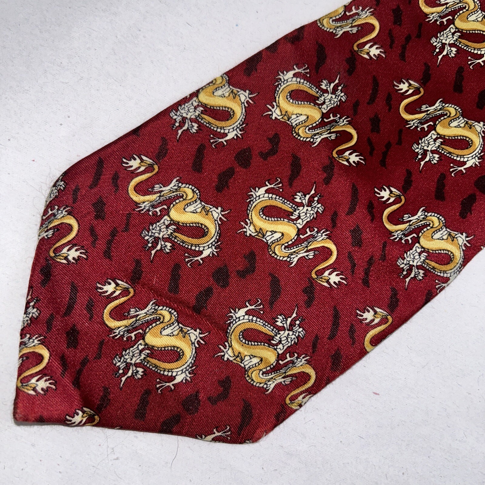 Silk Dragon Tie Red Tie With Yellow Gold Dragons