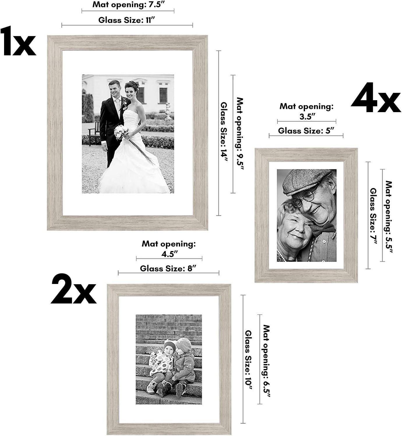 7 Piece Picture Frame Set Wall and Tabletop Photo Display Modern Driftwood