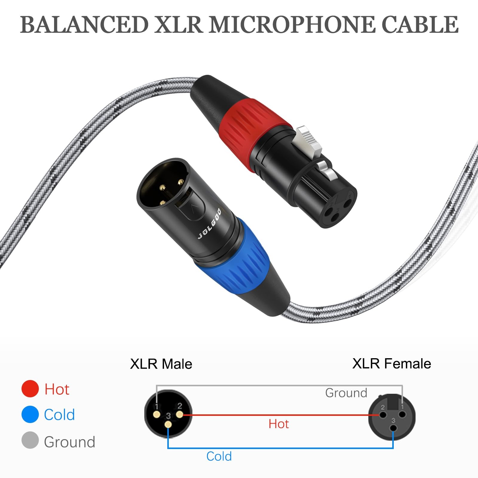 2 ft XLR Cables 6 Pack, Balanced DMX Cable, XLR Male to Female, 3 PIN Microph...