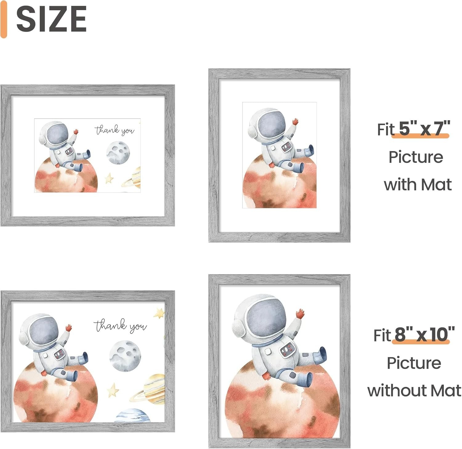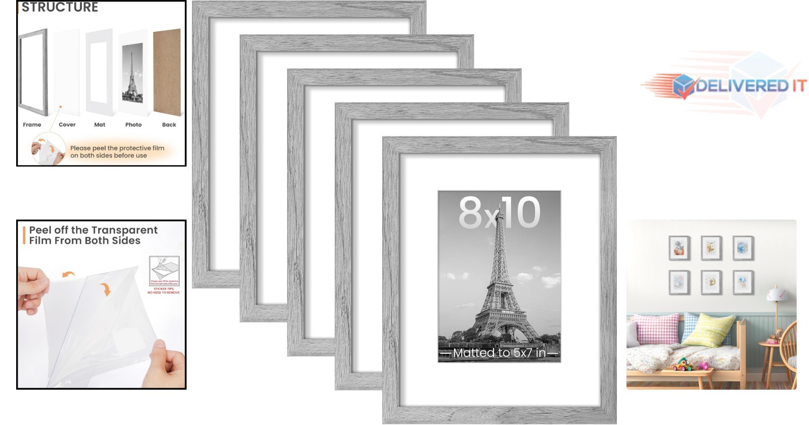 Set of 5 Picture Frames 8x10 Wall Gallery Display Photos 5x7 Matted Gray