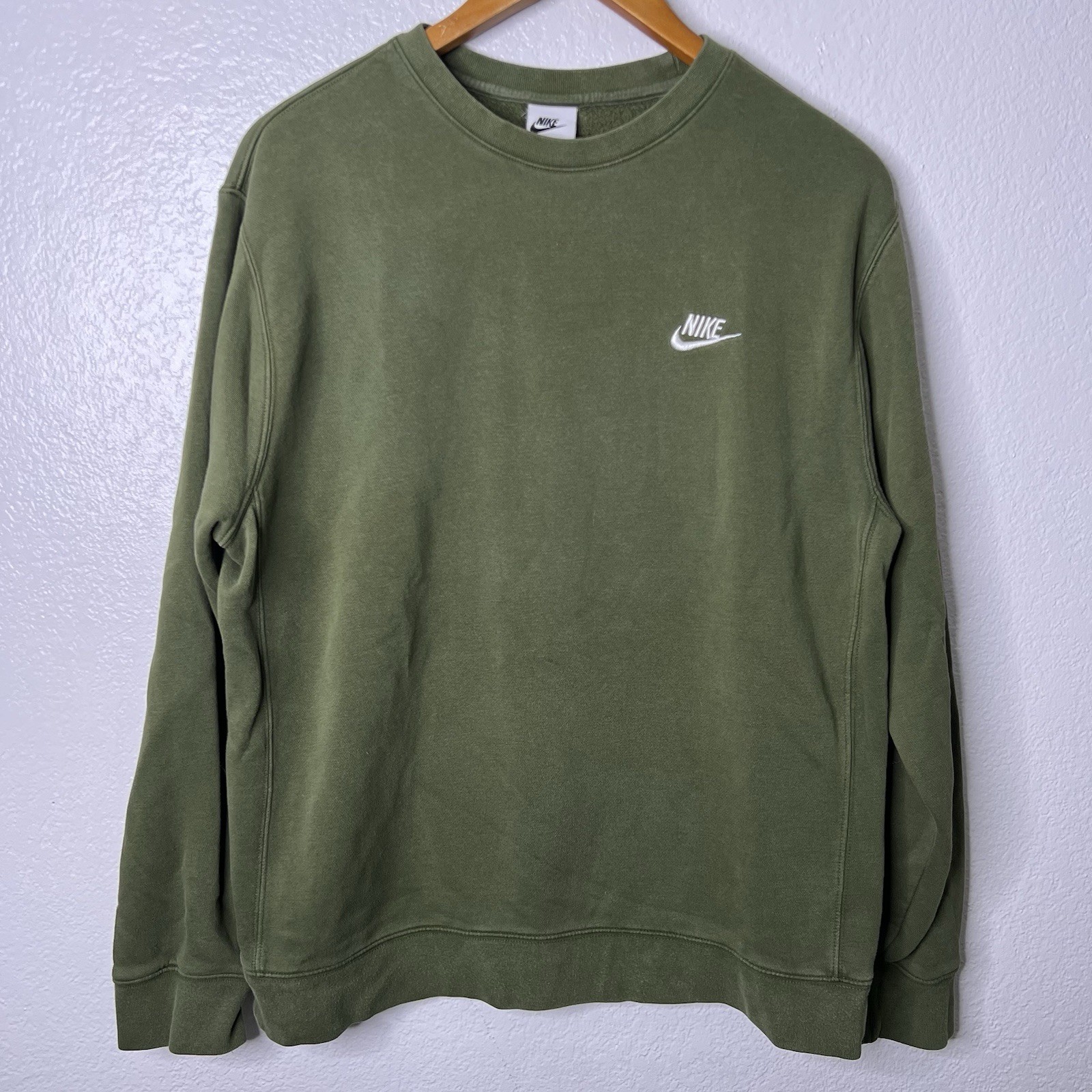Nike Sportswear Club Fleece Crew Neck Pullover Sweatshirt Men Size Medium Green