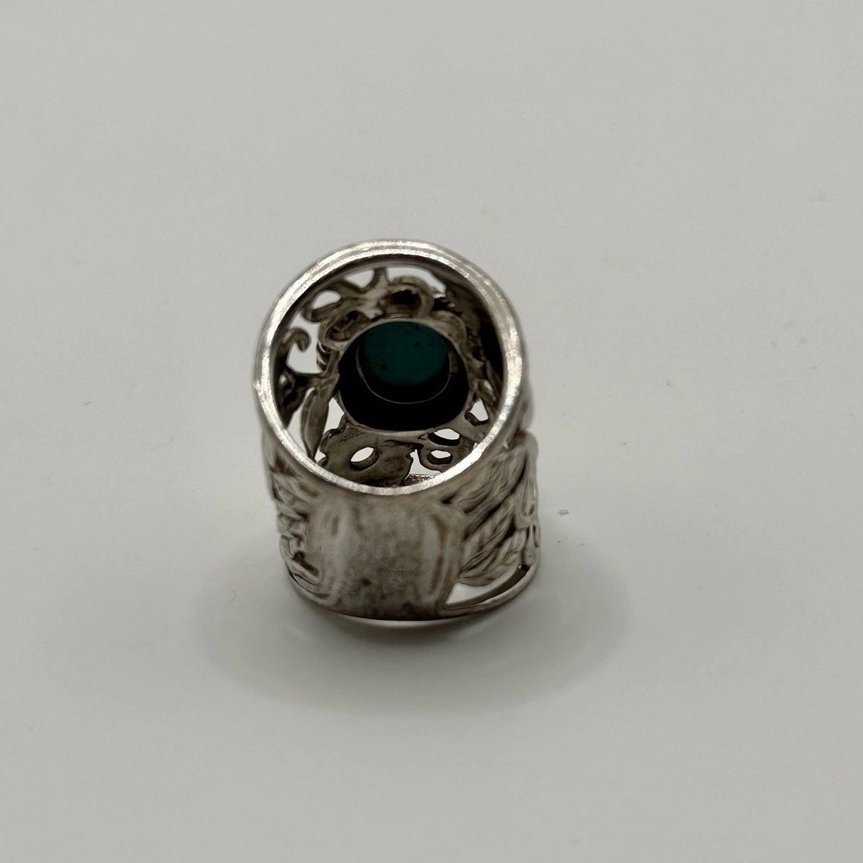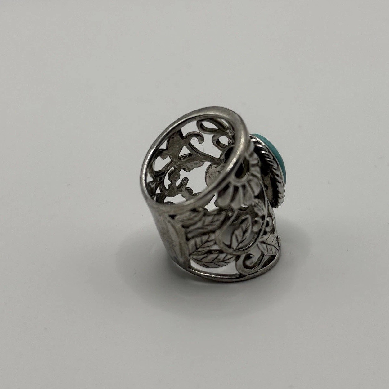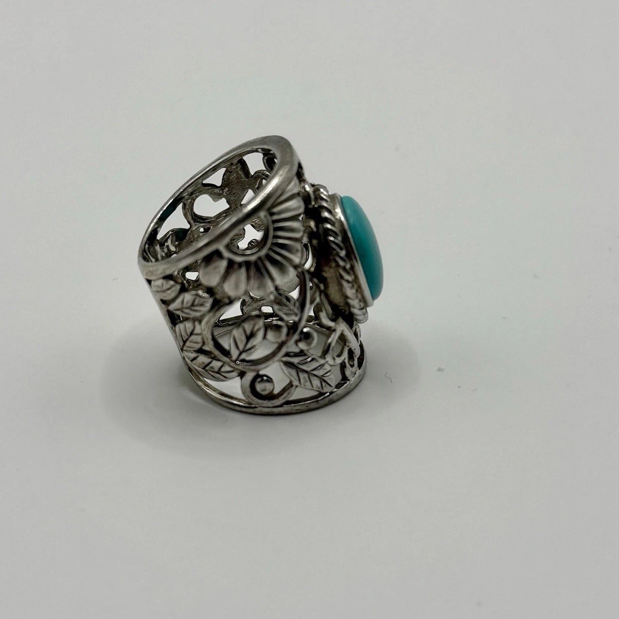 как выглядит CFJ Thai 925 Sterling Silver Turquoise Ring Floral Filigree Boho Wide Band 7.5 фото