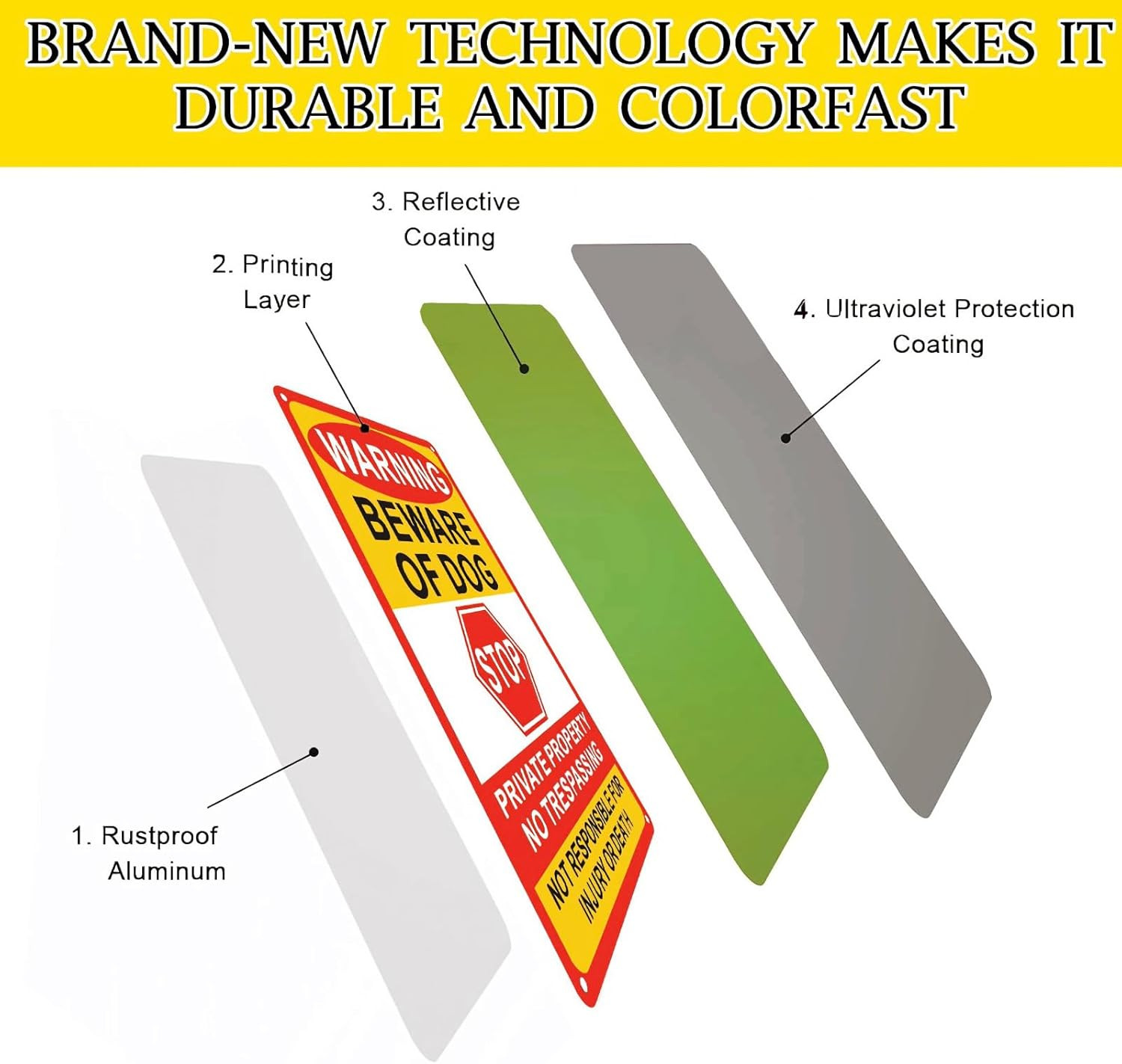 3 Pack Beware of Dog Sign,8X12 Inches, Reflective Film, Anti-Rust Aluminum Metal