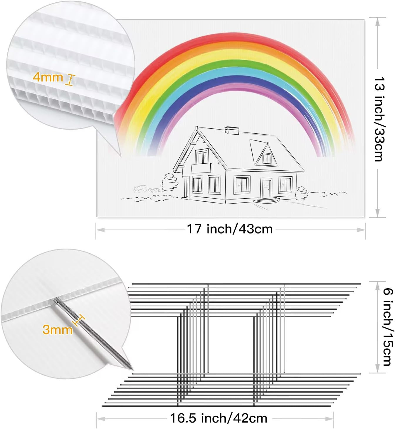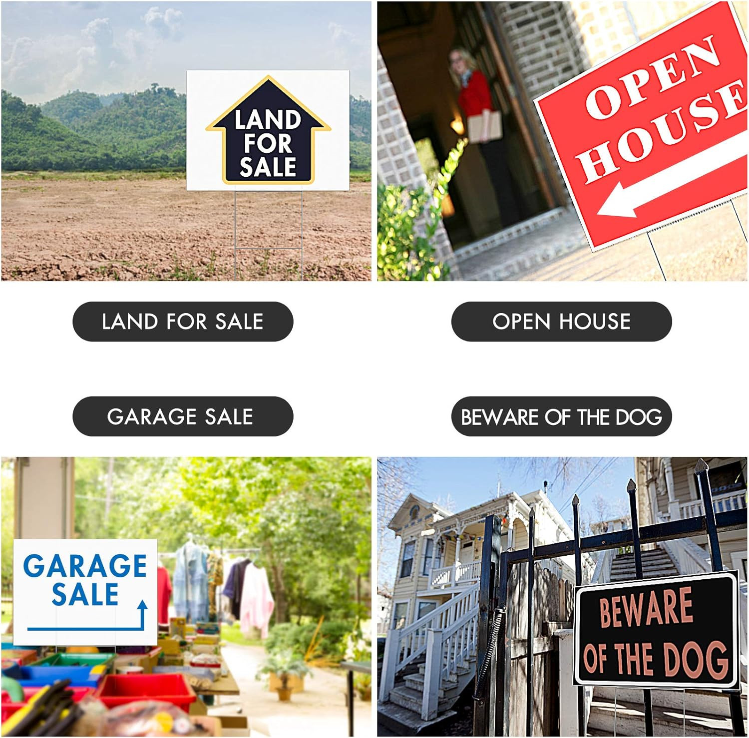 4 Pack Blank Yard Signs with Stakes, 17 X 13 Inches White Garden Yard Signs for