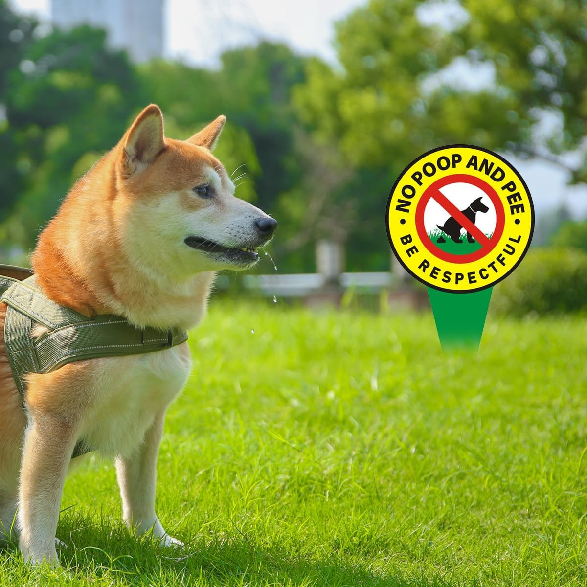 2 PCS No Dog Poop Signs for Yard - Double Sided Be Respectful No Poop and Pee Si