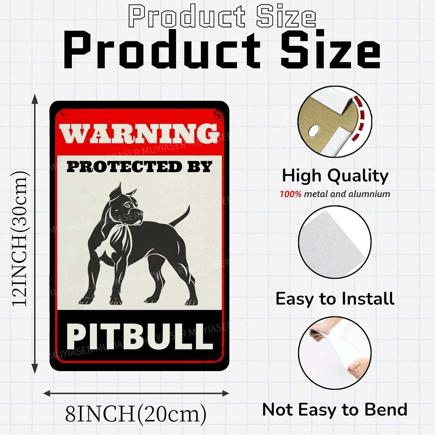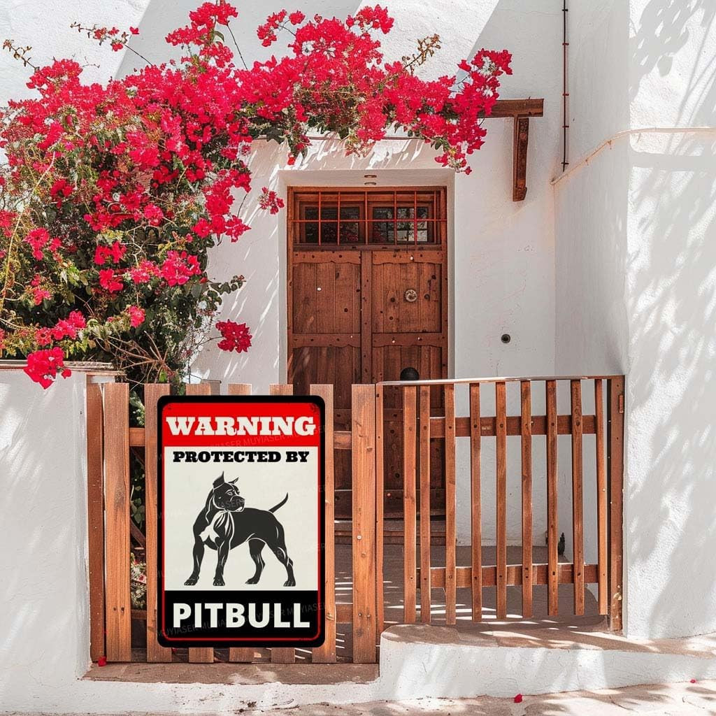 Beware of Dog Sign for Fence Warning Protected by Pitbull Aluminum Metal Tin Sig