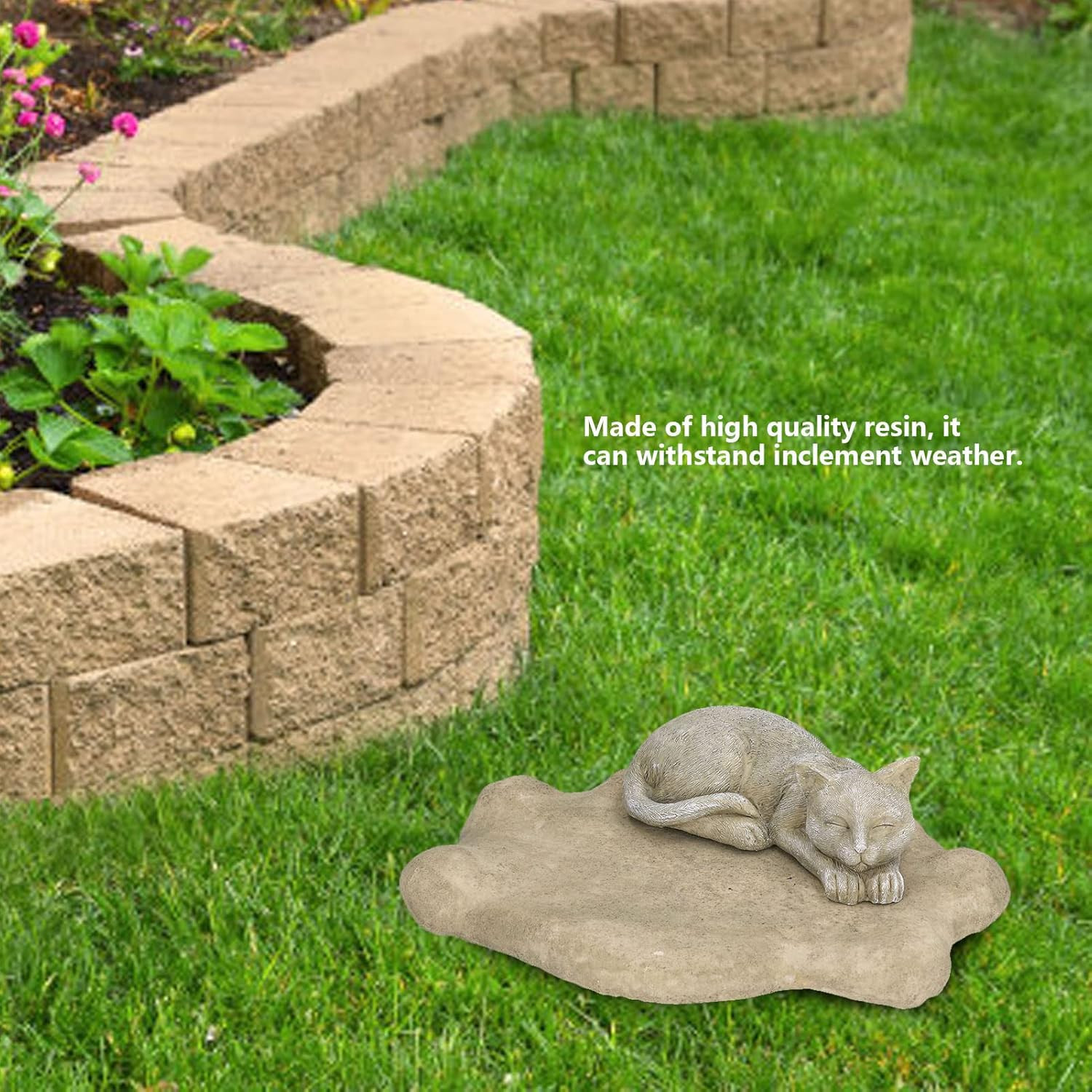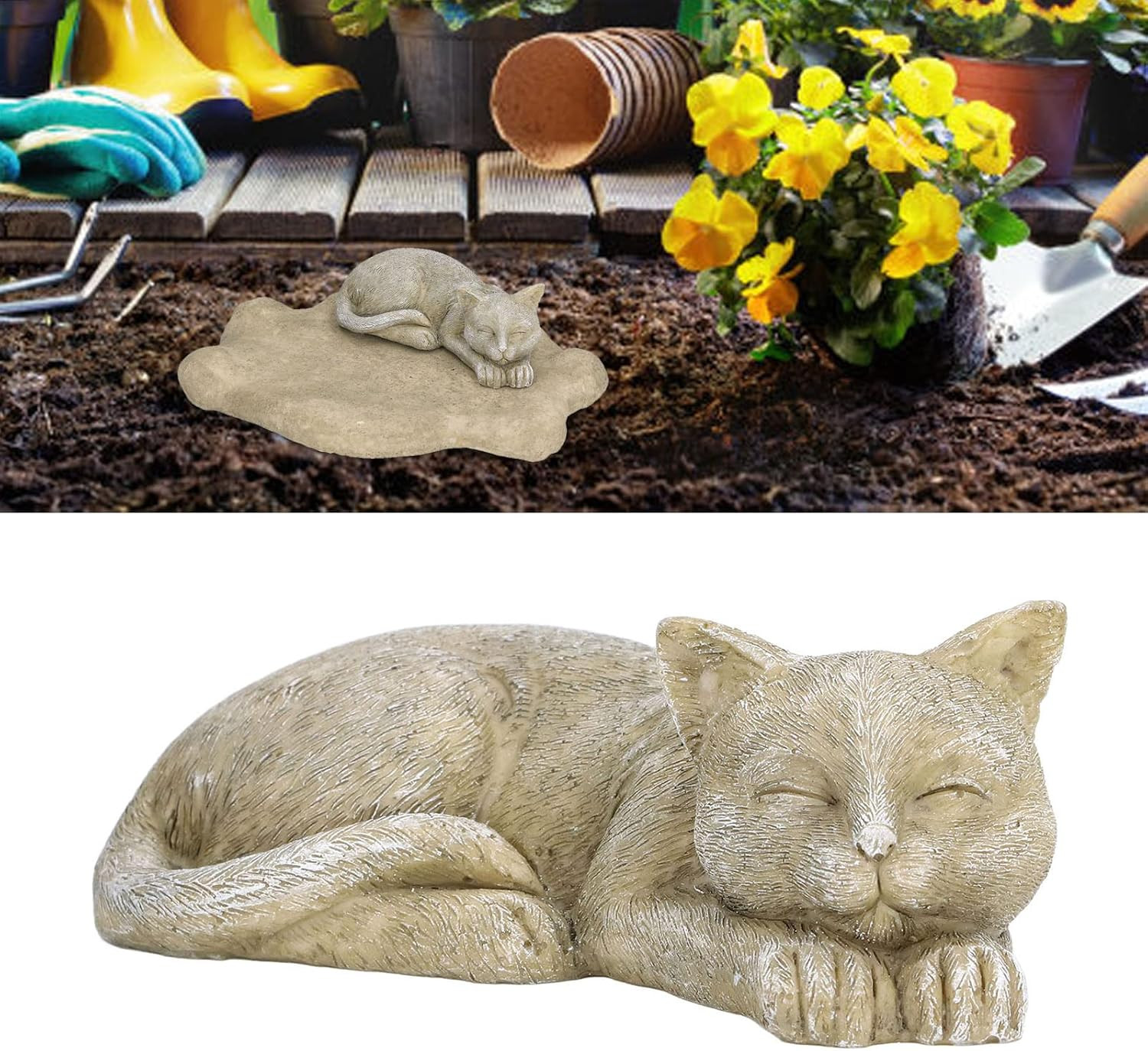 Cat Garden Statue Outdoor, 5.5In Mini Cat Figurine Memorial Statue Sleeping Pet