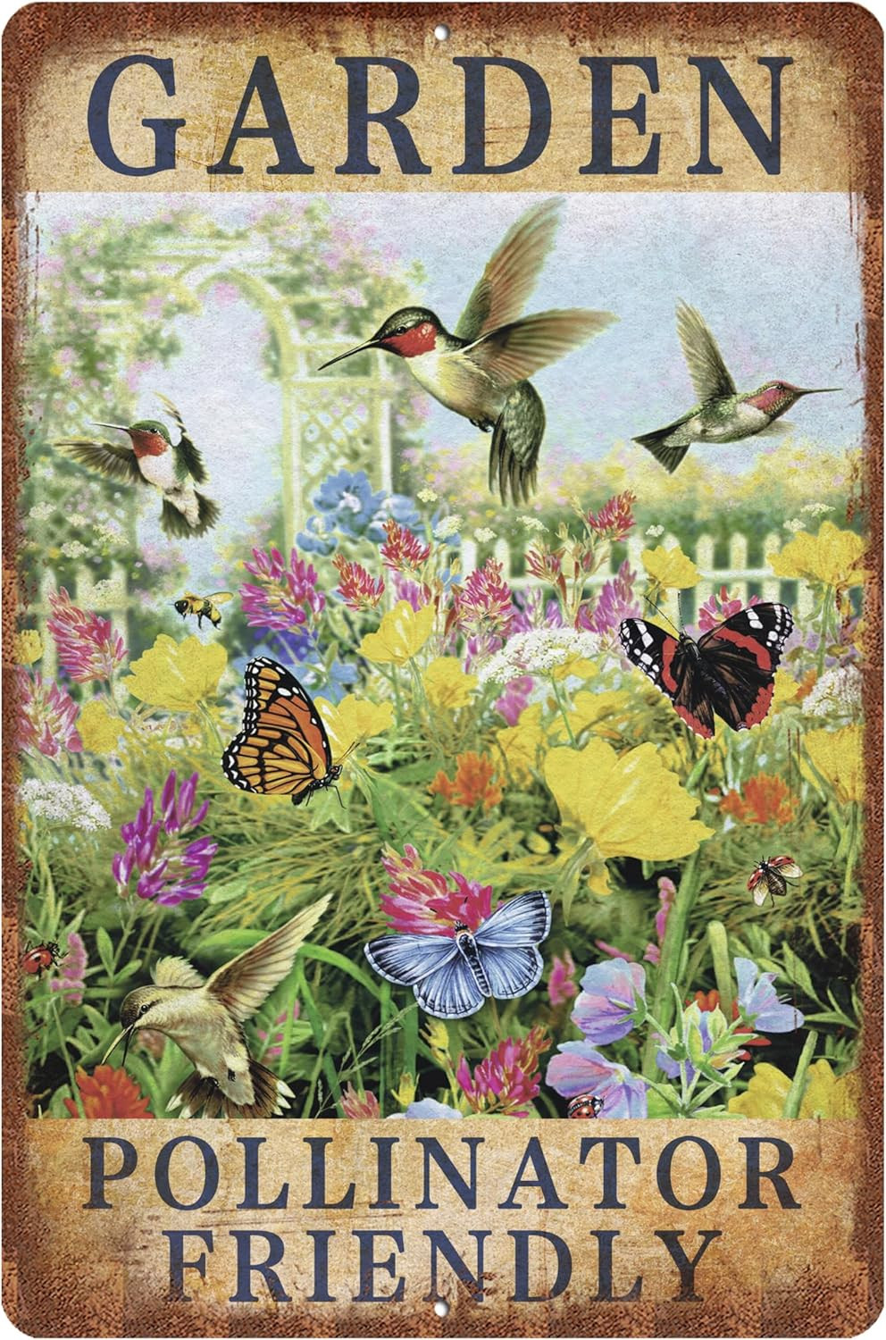 Vintage Garden Signs Pollinator Friendly Retro Yard Metel Tin Signs Outdoor Alum