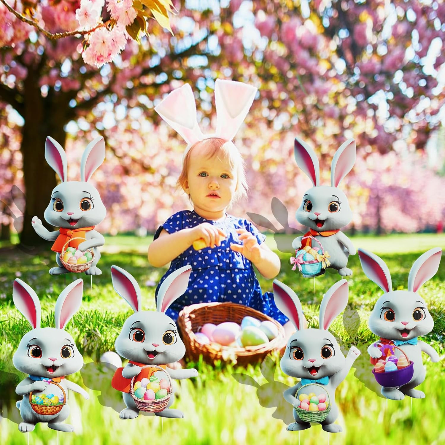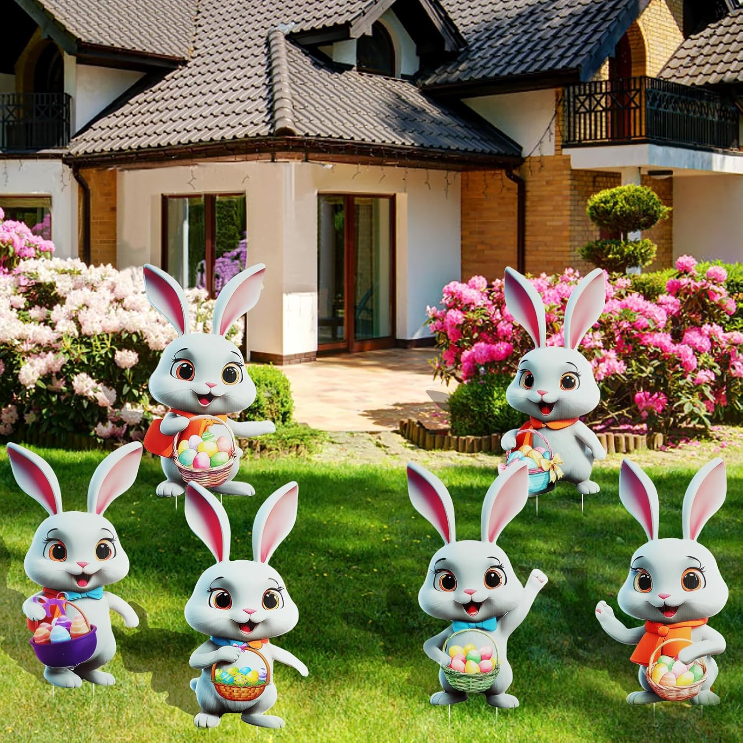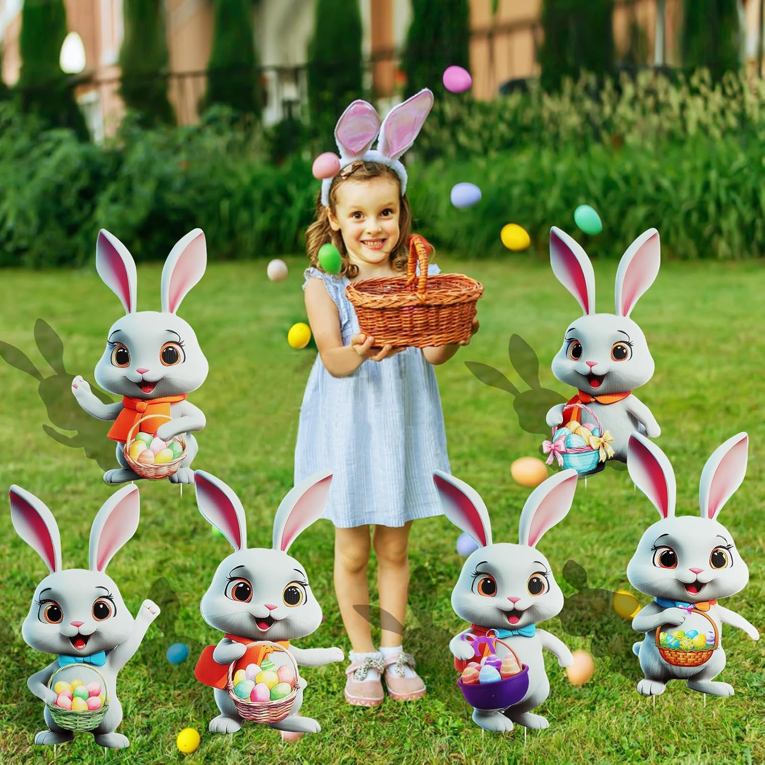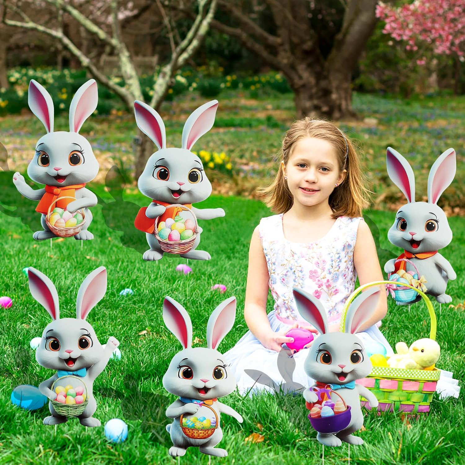6Pcs Easter Bunny Yard Signs Outdoor Easter Bunny Yard Decorations Outdoor Bunny