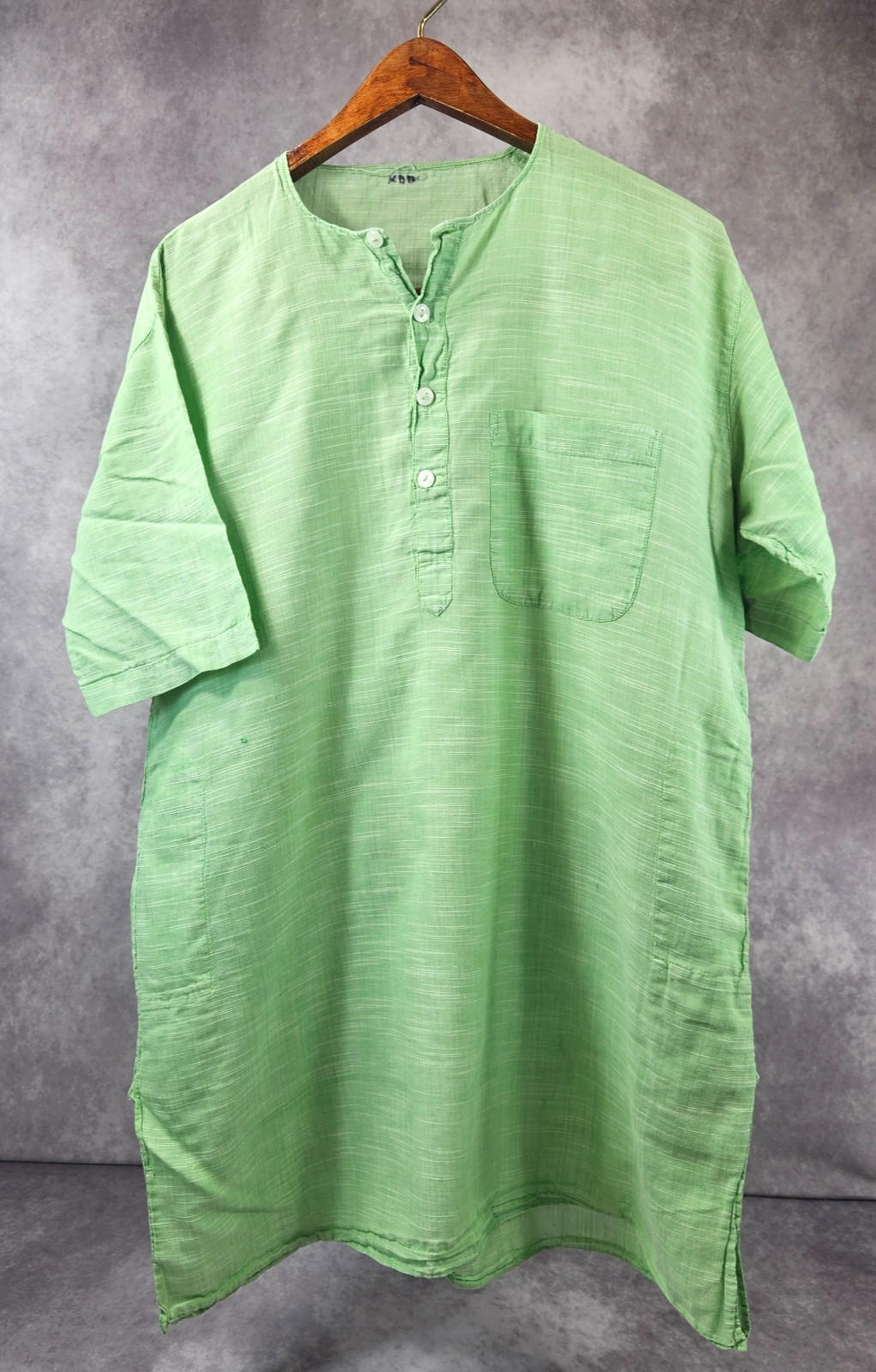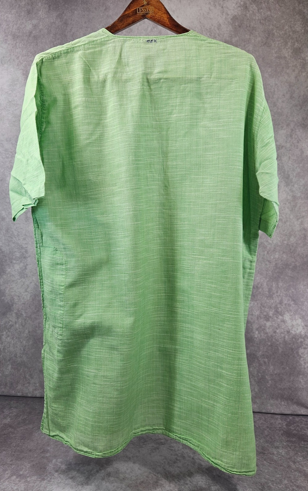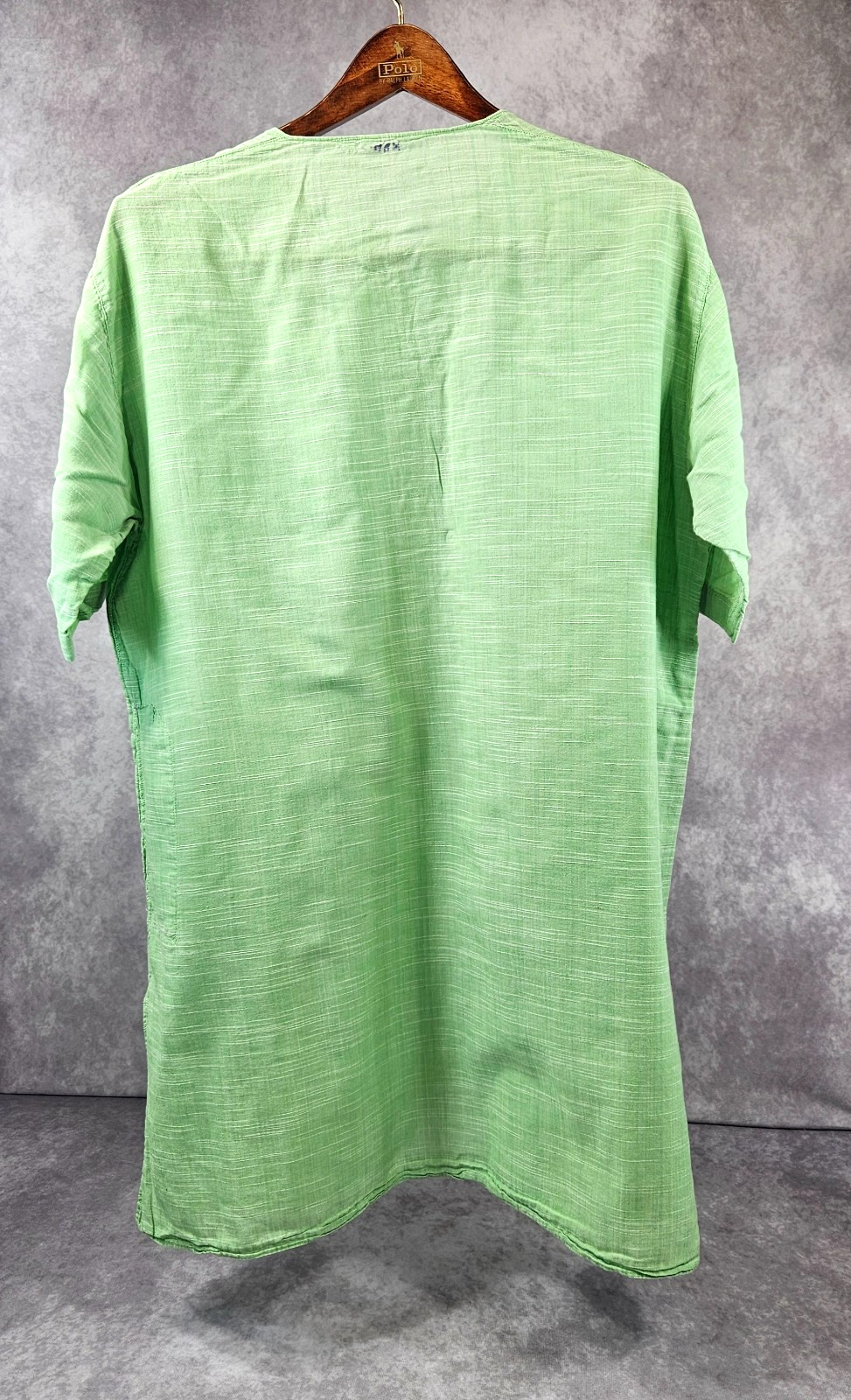 Men s Kurta Tunic Long Shirt 100 Cotton Indian Ethnic Wear Green Short Sleeves