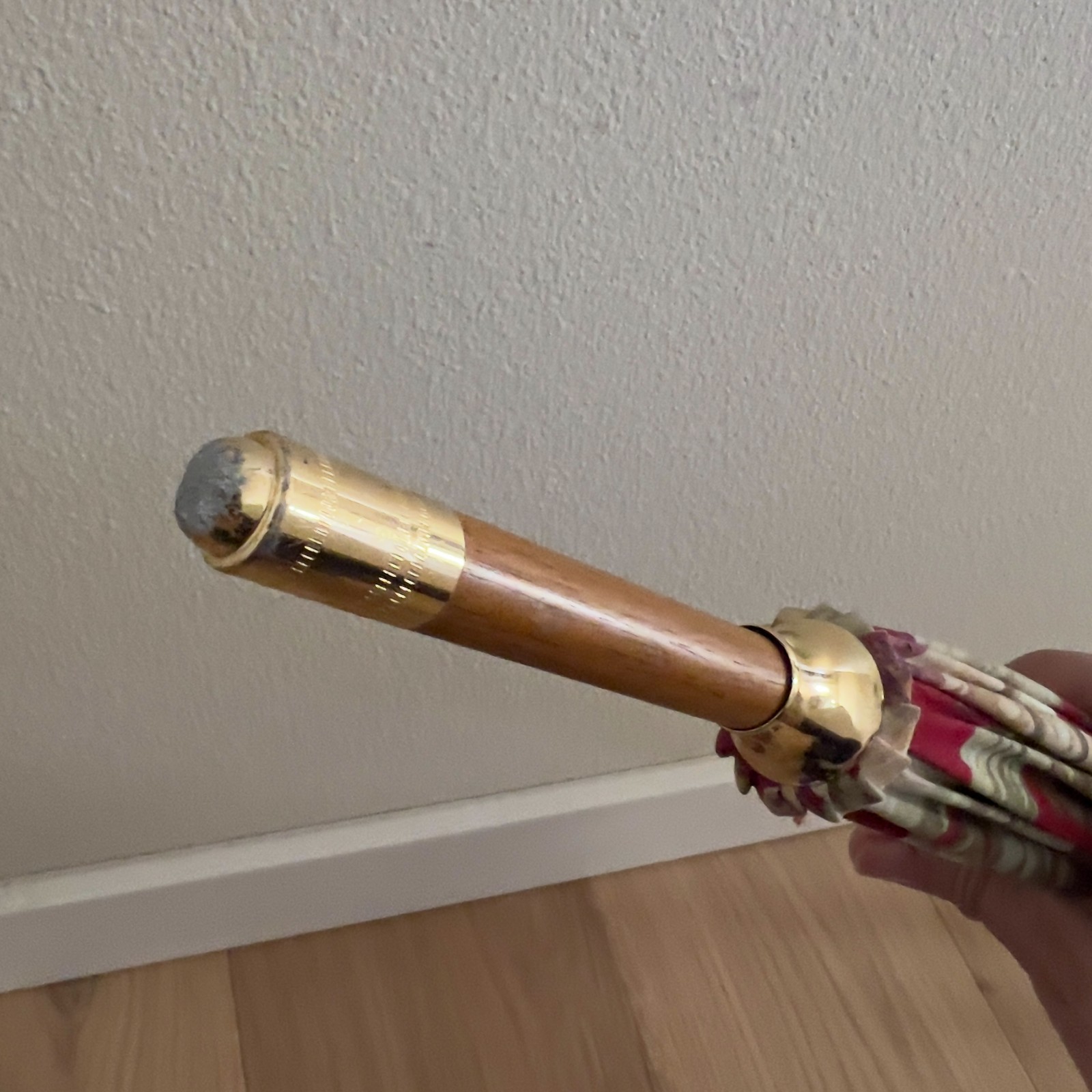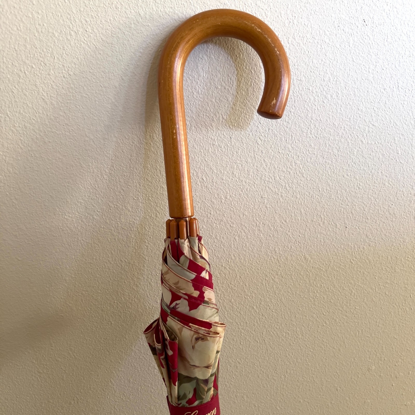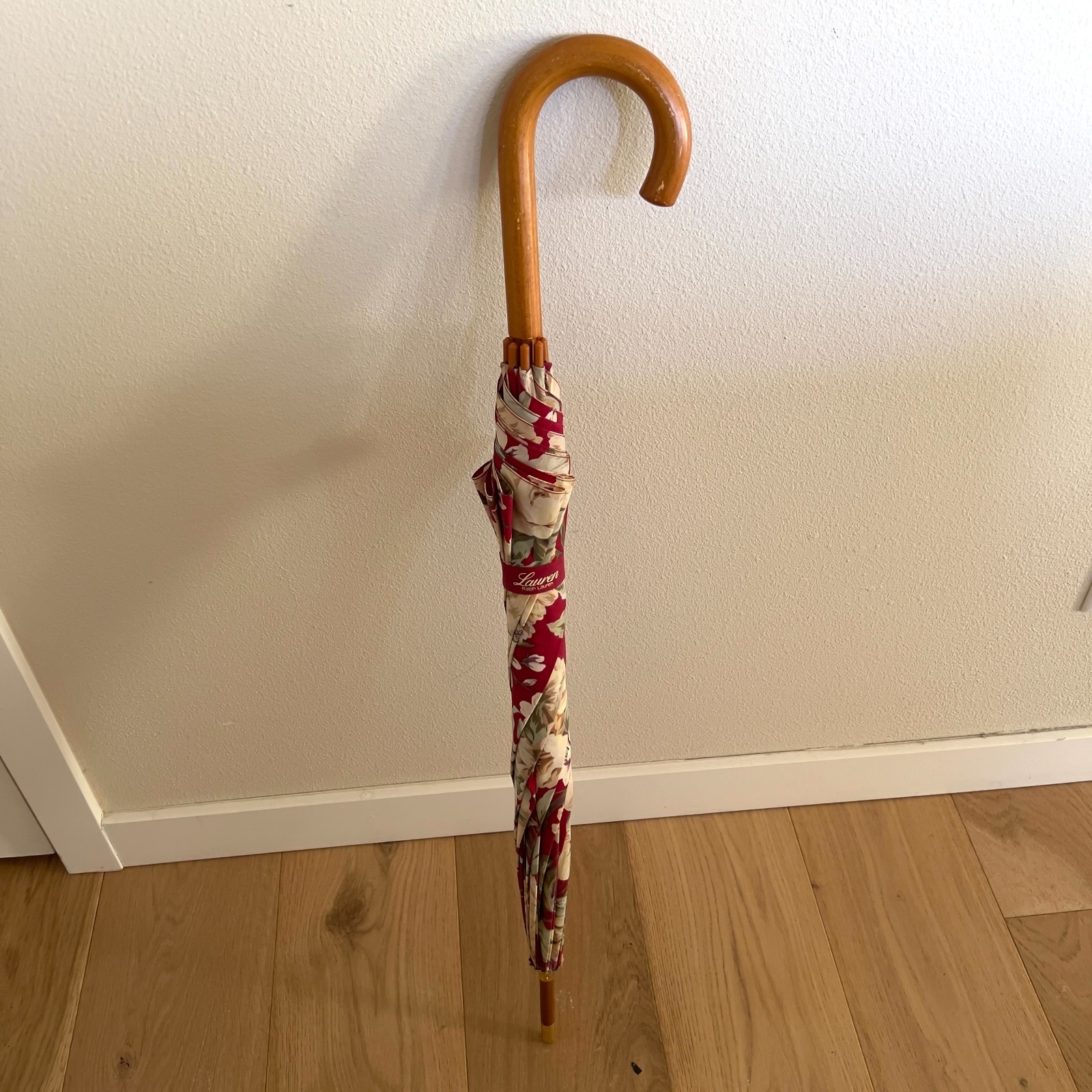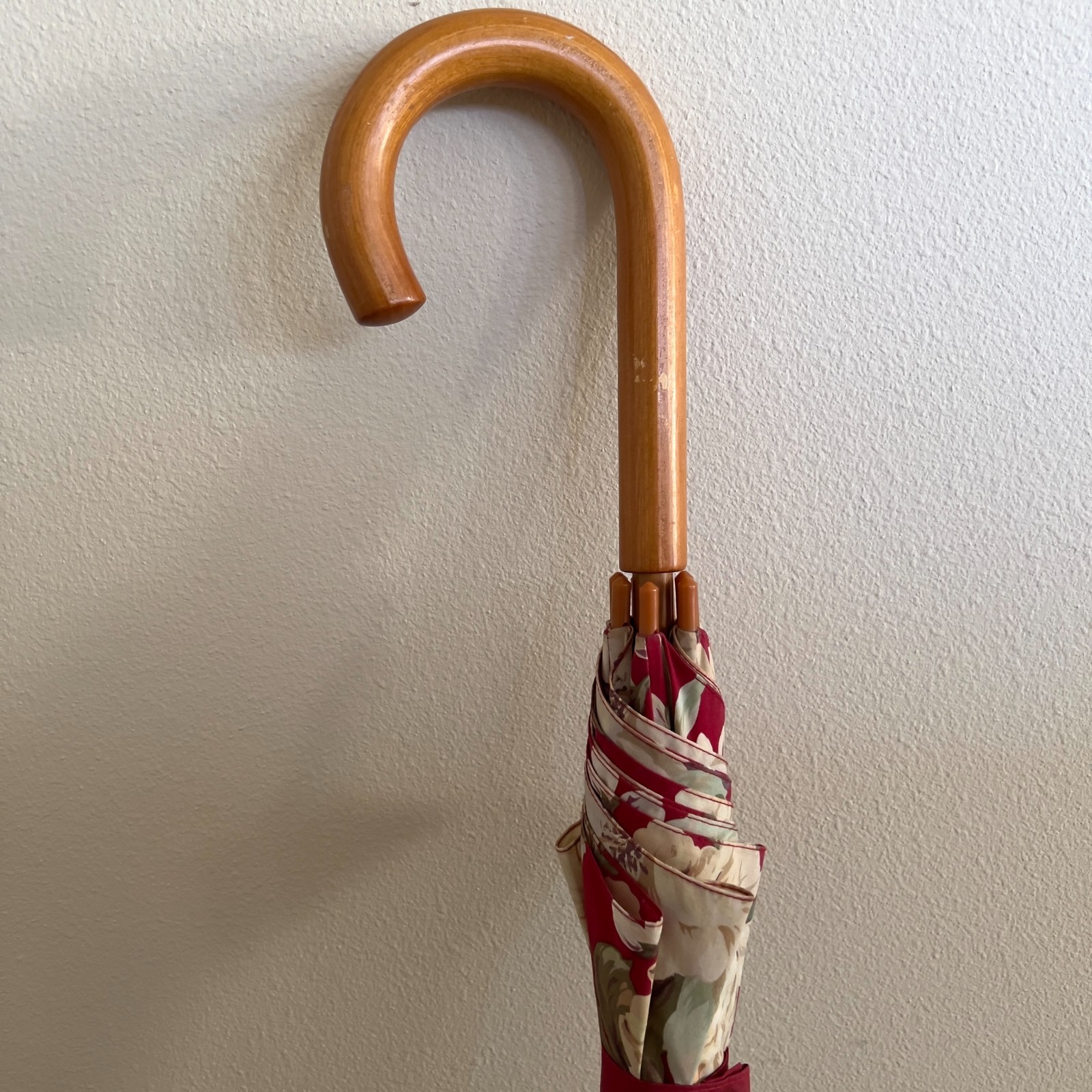 как выглядит Vintage Ralph Lauren Floral Print Umbrella Wooden Cane Style Handle 40" Open фото