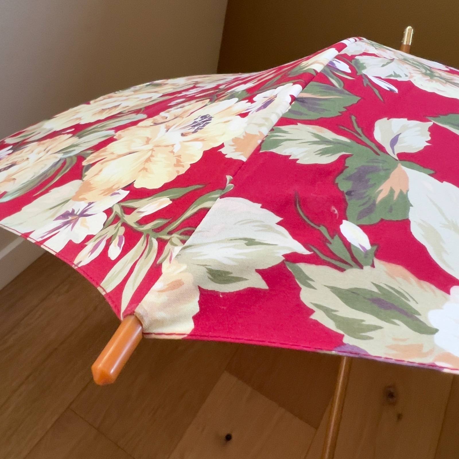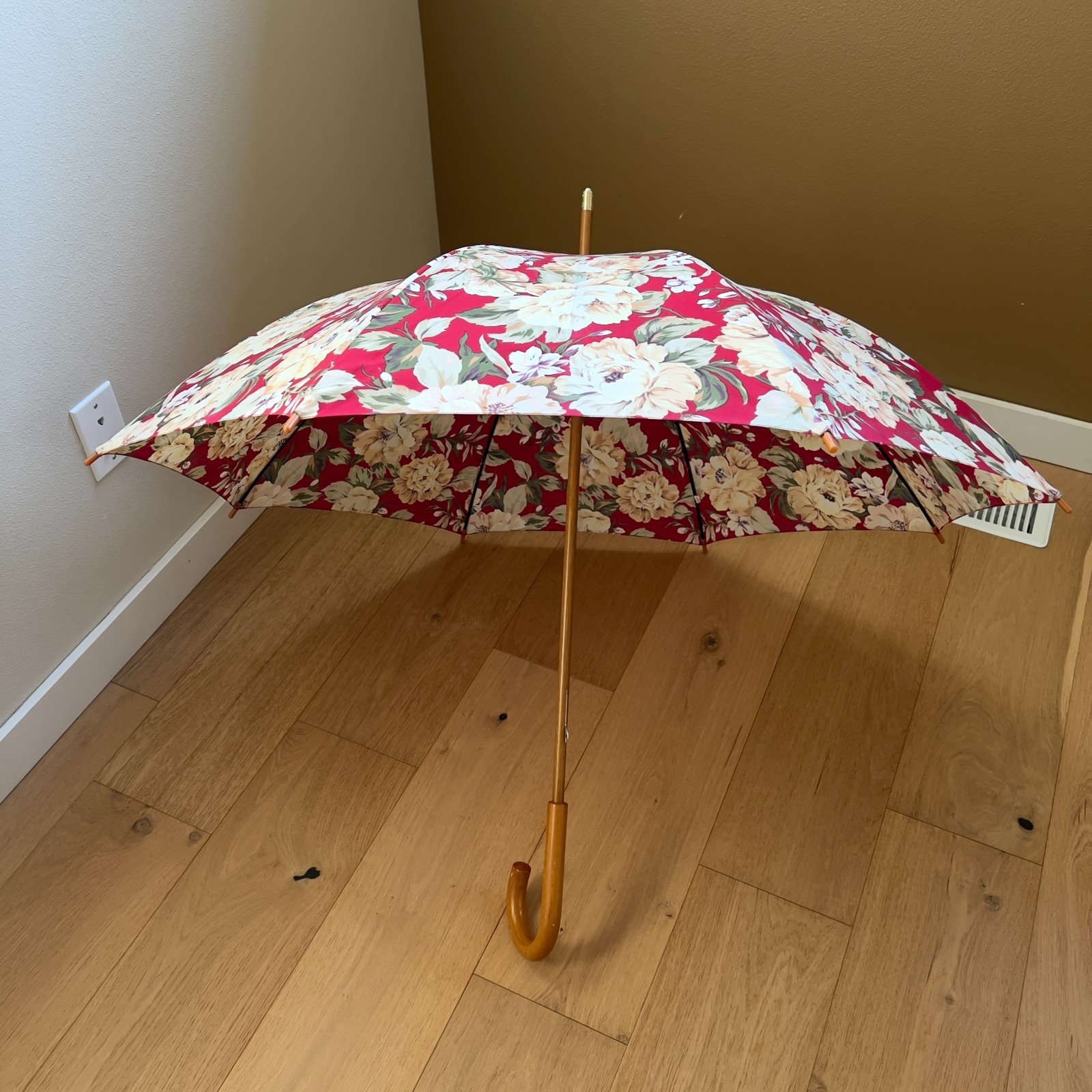 Vintage Ralph Lauren Floral Print Umbrella Wooden Cane Style Handle 40 Open