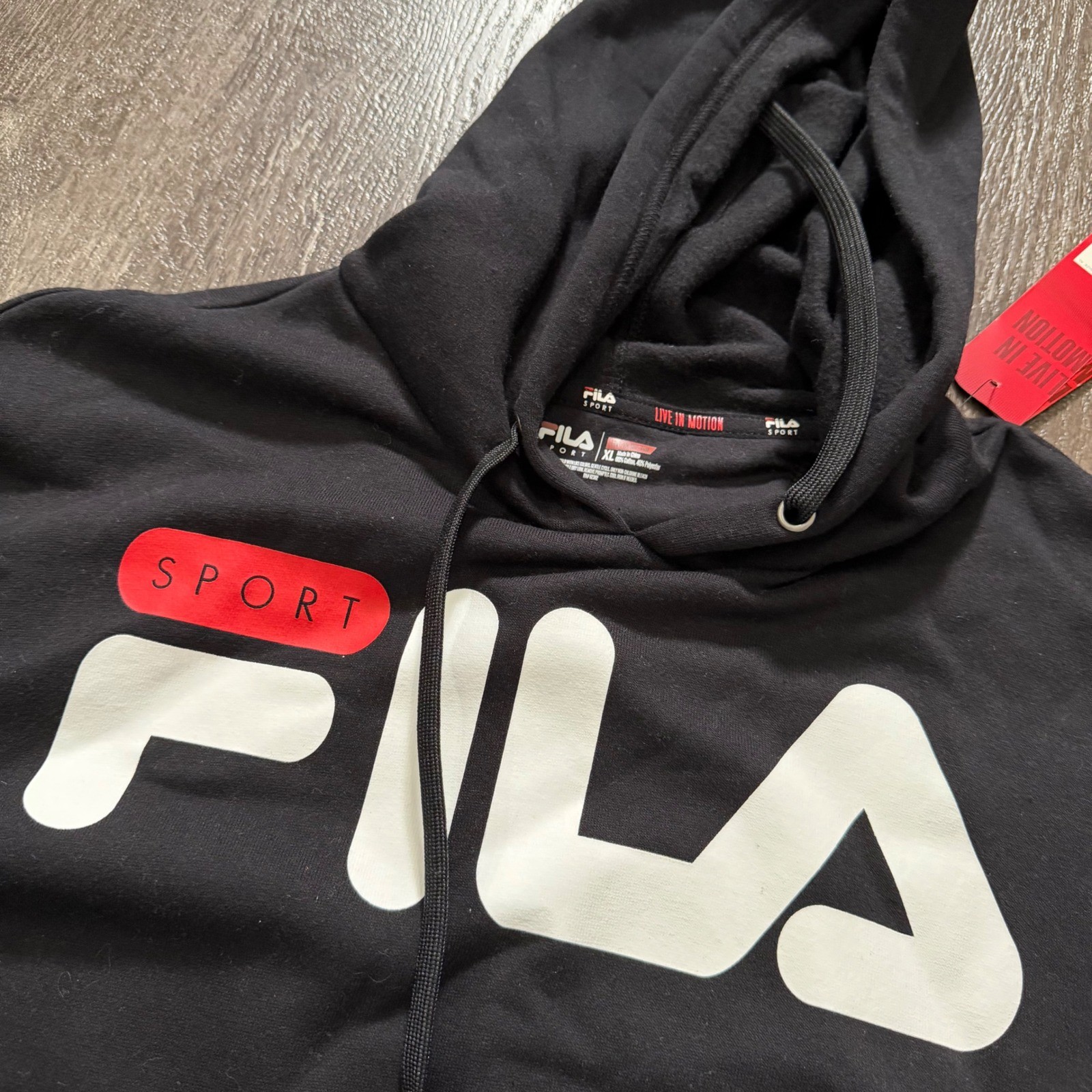 Fila Sport Mens Black Hoodie Sweatshirt Long Sleeve Pullover Hooded XL NWT