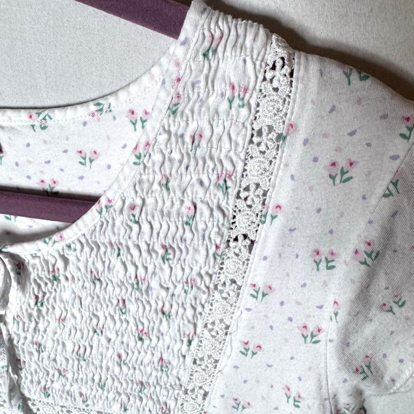 как выглядит Eileen West White Cotton Nightgown Lace Trim Cottage Soft Pink Floral Sz M фото