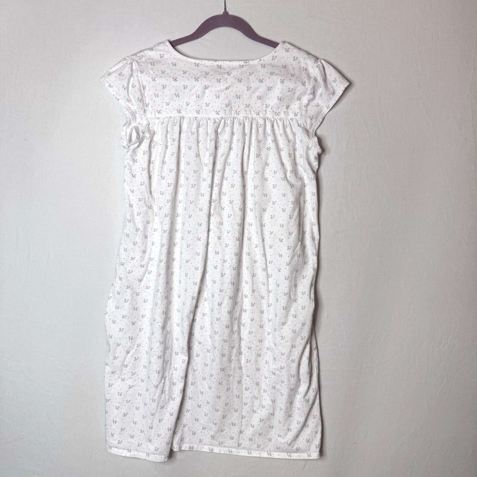 Eileen West White Cotton Nightgown Lace Trim Cottage Soft Pink Floral Sz M
