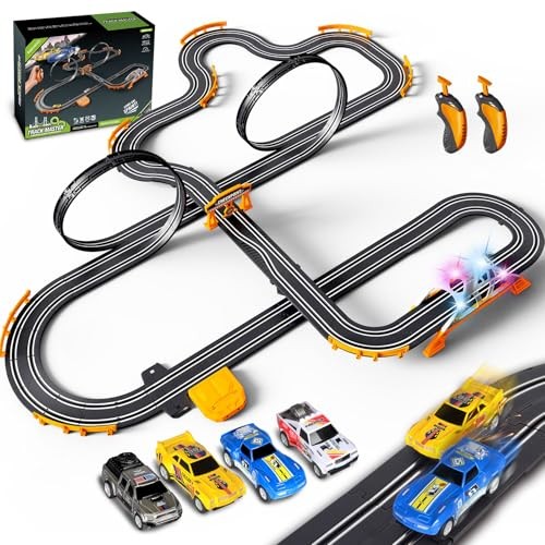 Slot Car Race Track for Kids with 4 Slot Cars, Dual Racing Electric Car Tracks