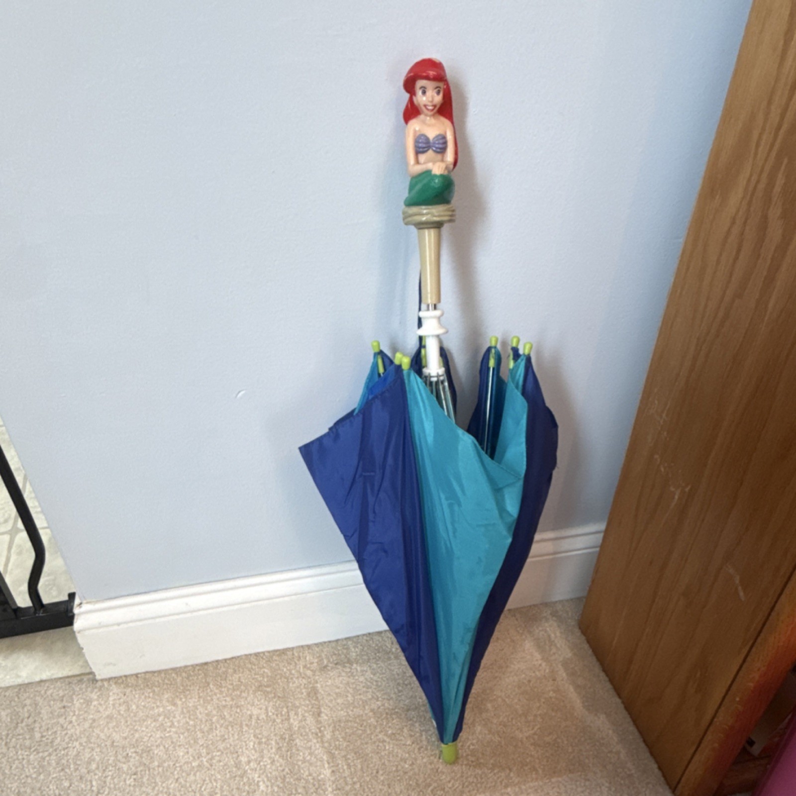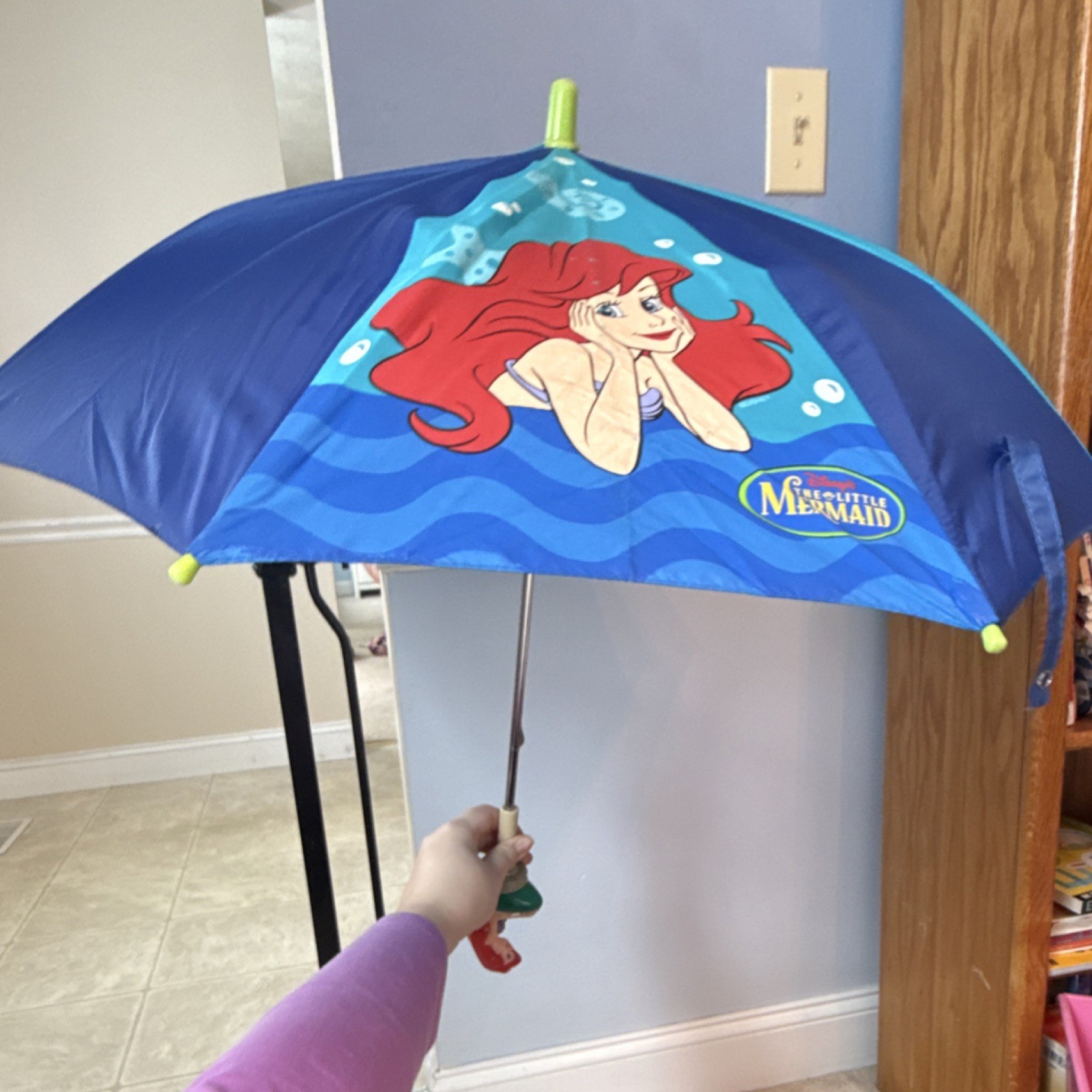 как выглядит Vintage Disney The Little Mermaid Ariel Girls Umbrella Blue Character Print фото