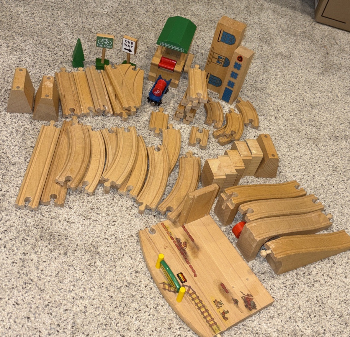 Thomas Friends Wooden Railway 50 Pc Lot Of Track Buildings Bridges Accessories